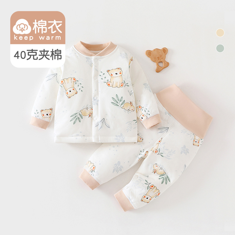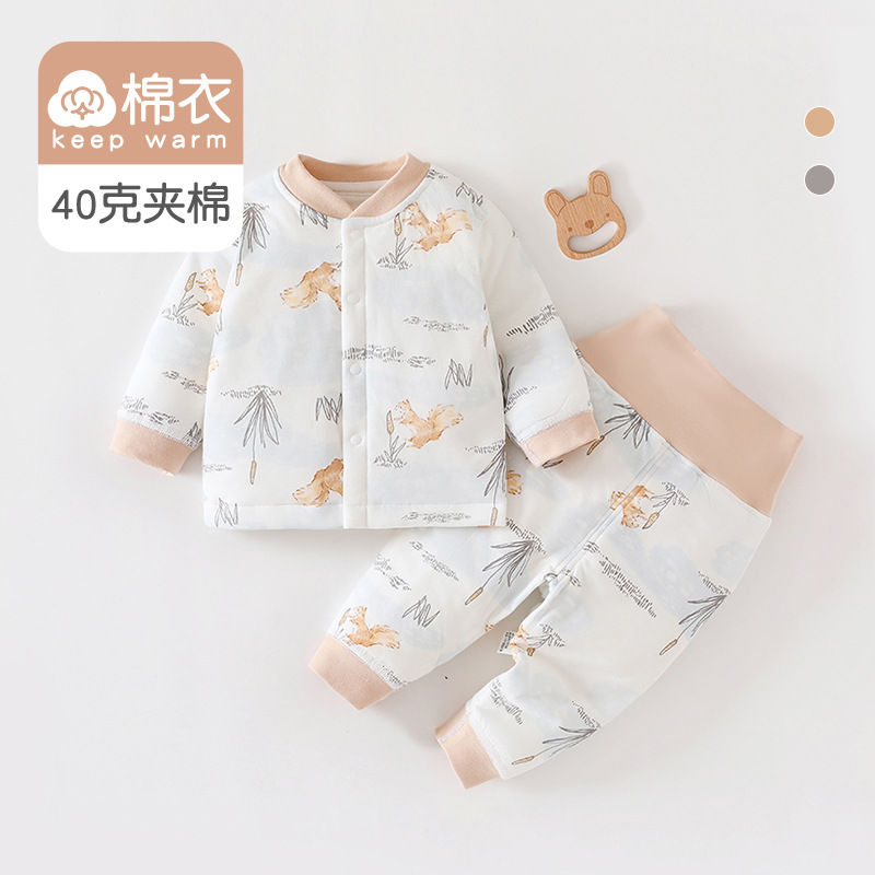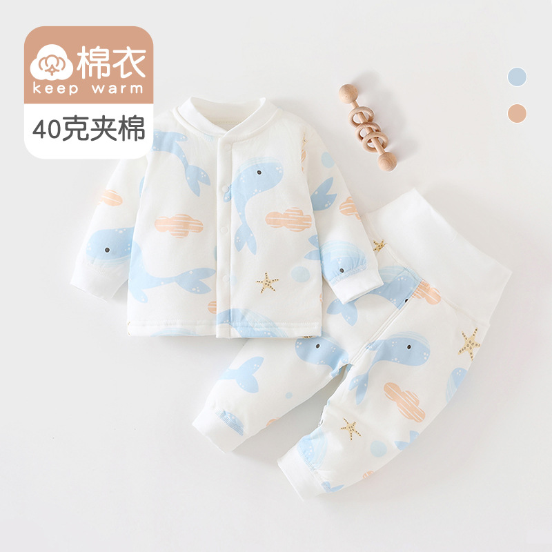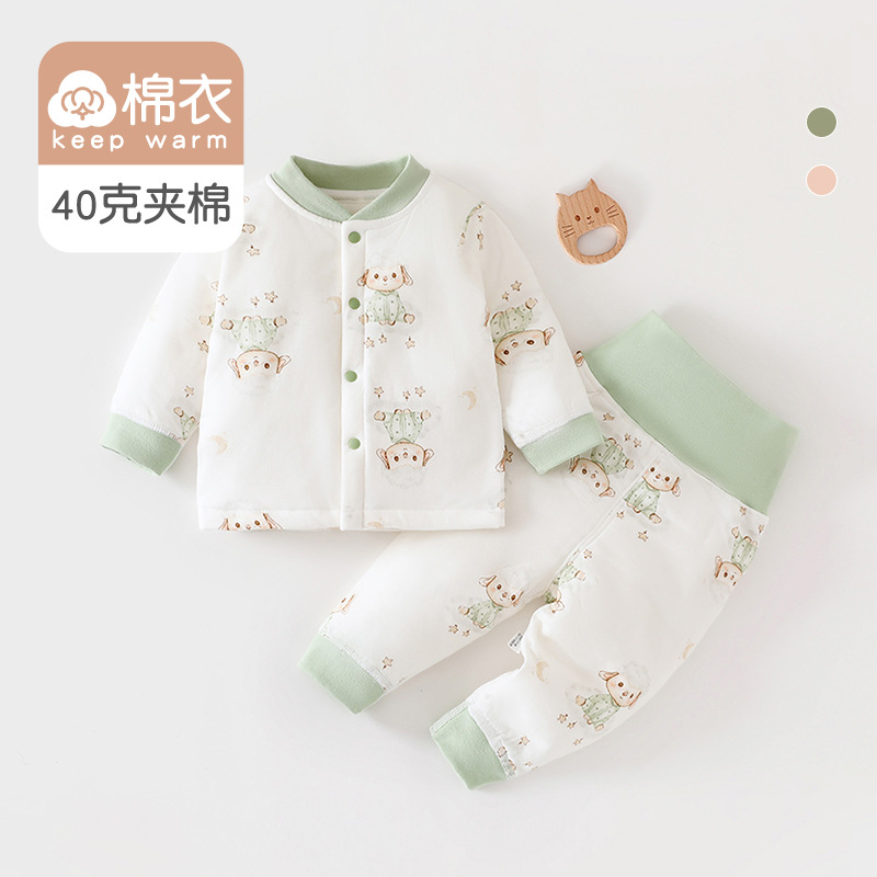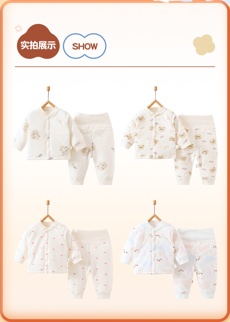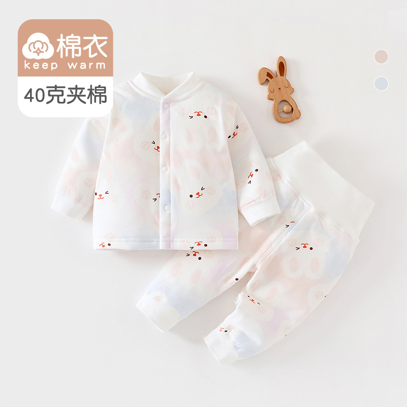 [아기 하이웨이스트 슈트] 40g 퀼팅 A급 순면 봄, 가을 신생아옷 남녀공용 아기 잠옷 면옷