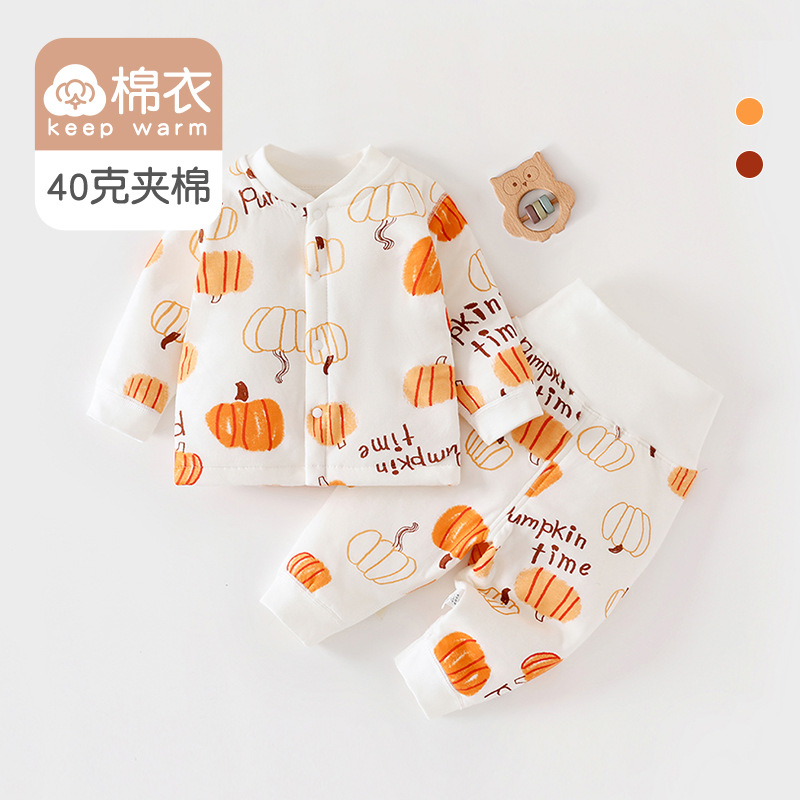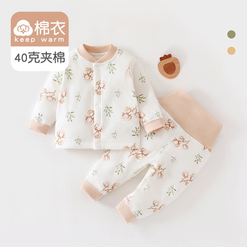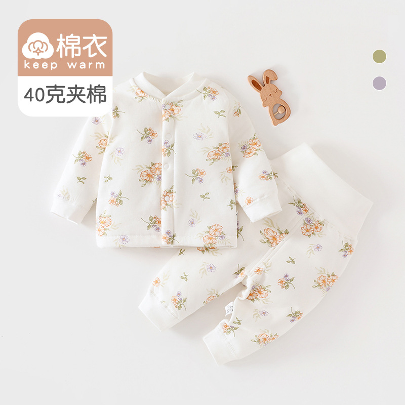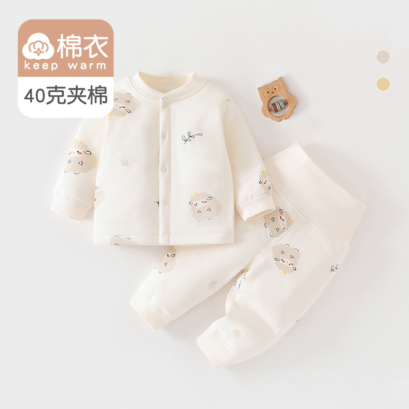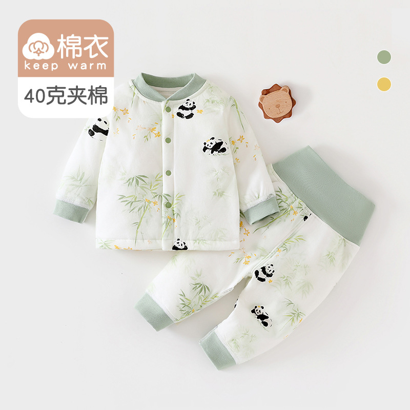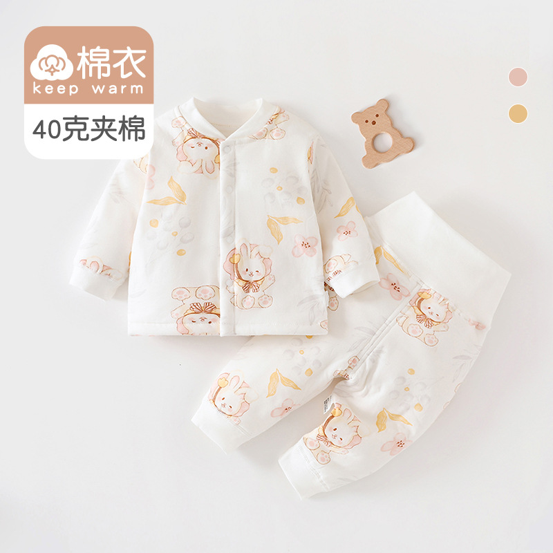 [아기 하이웨이스트 슈트] 40g 퀼팅 A급 순면 봄, 가을 신생아옷 남녀공용 아기 잠옷 면옷