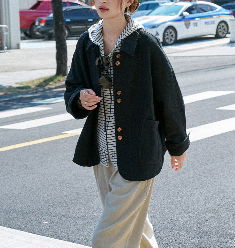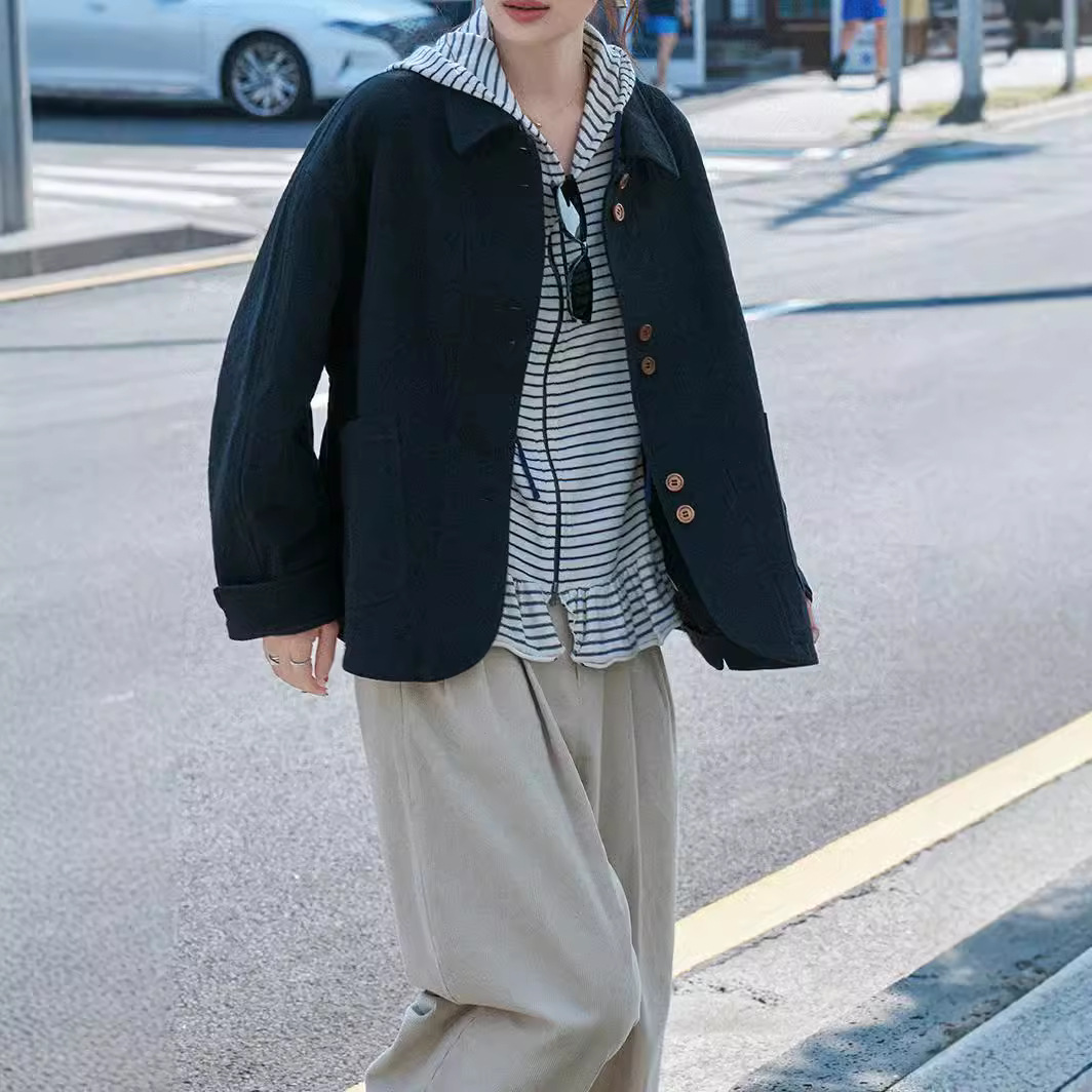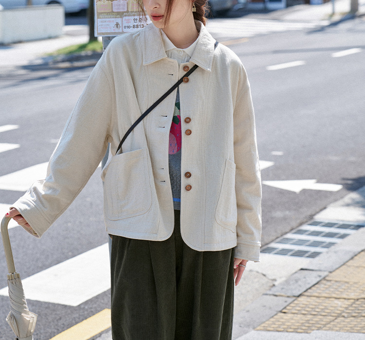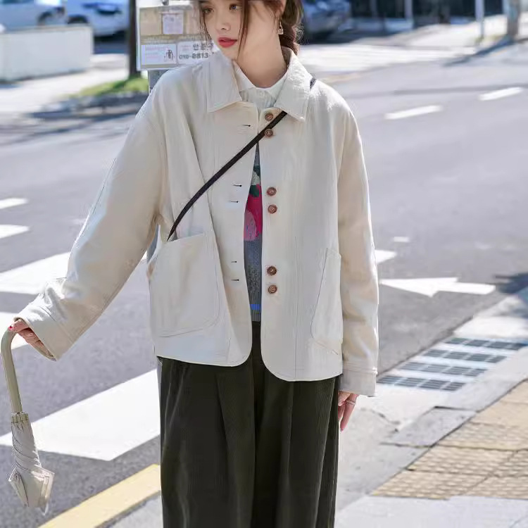 "스케치 작업실" "Friedtimes" 24AW 새로운 질감 노르딕 레트로 짧은 윈드 브레이커 세트 재킷