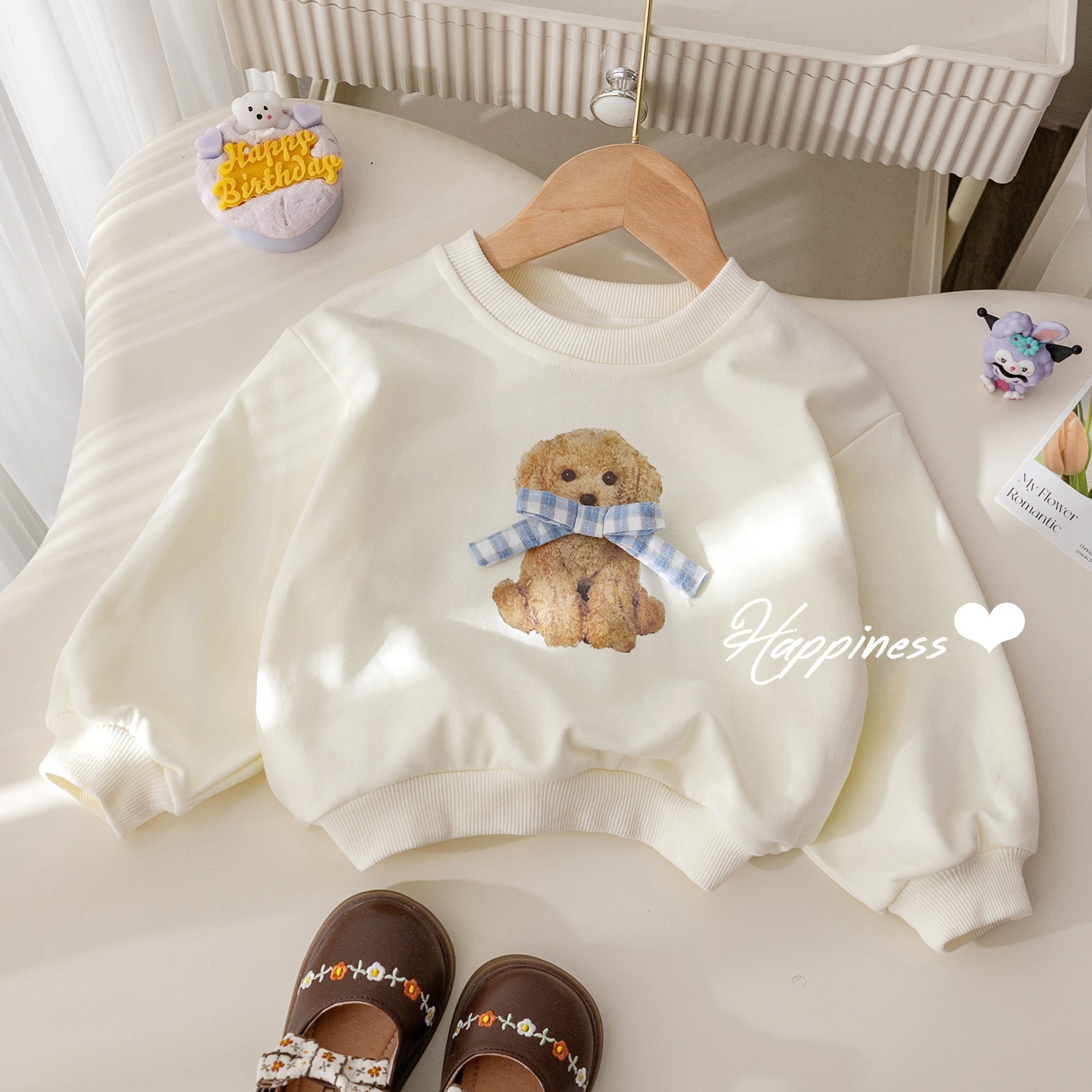 여아 봄 가을 세트 2026년 신상 리본 프린트 스웨트셔츠와 세련된 레이스 플래드 캐주얼 팬츠 투피스 세트스토어 가기