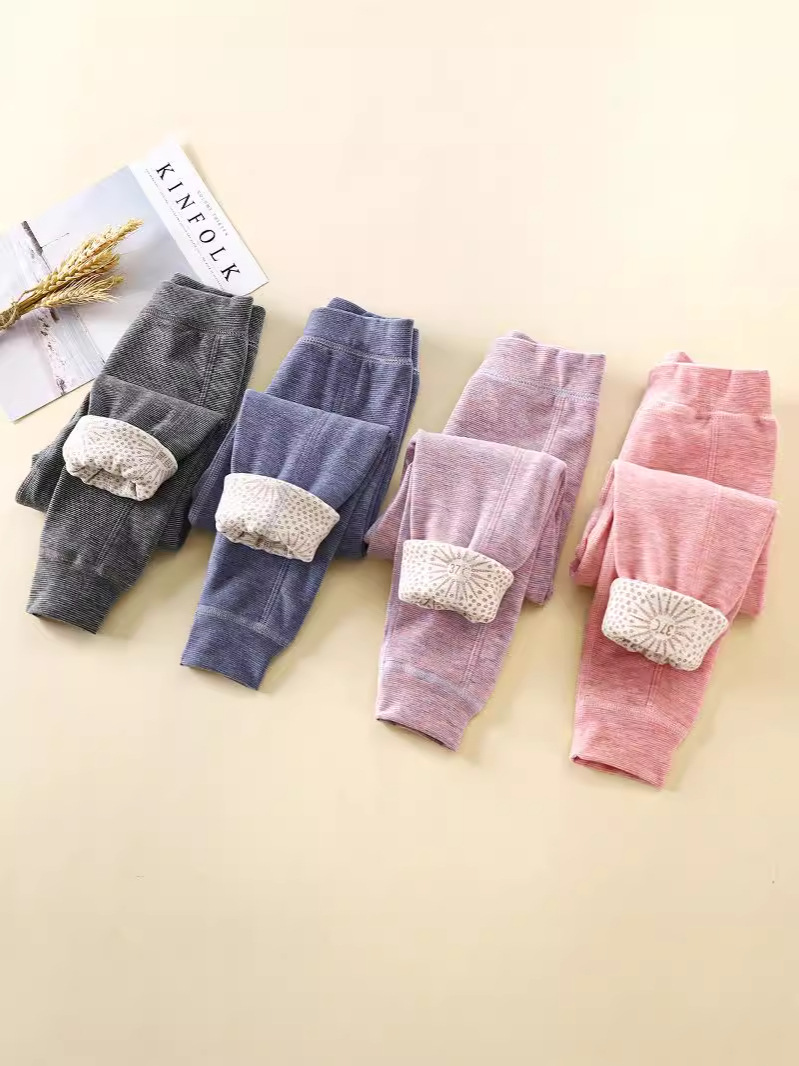 더블 레이어 어린이 따뜻한 바지 두꺼운 소년 소녀 울 실크 코튼 바지 중 및 큰 어린이 가을 및 겨울 학교 유니폼 아티팩트 어린이 바지스토어 가기