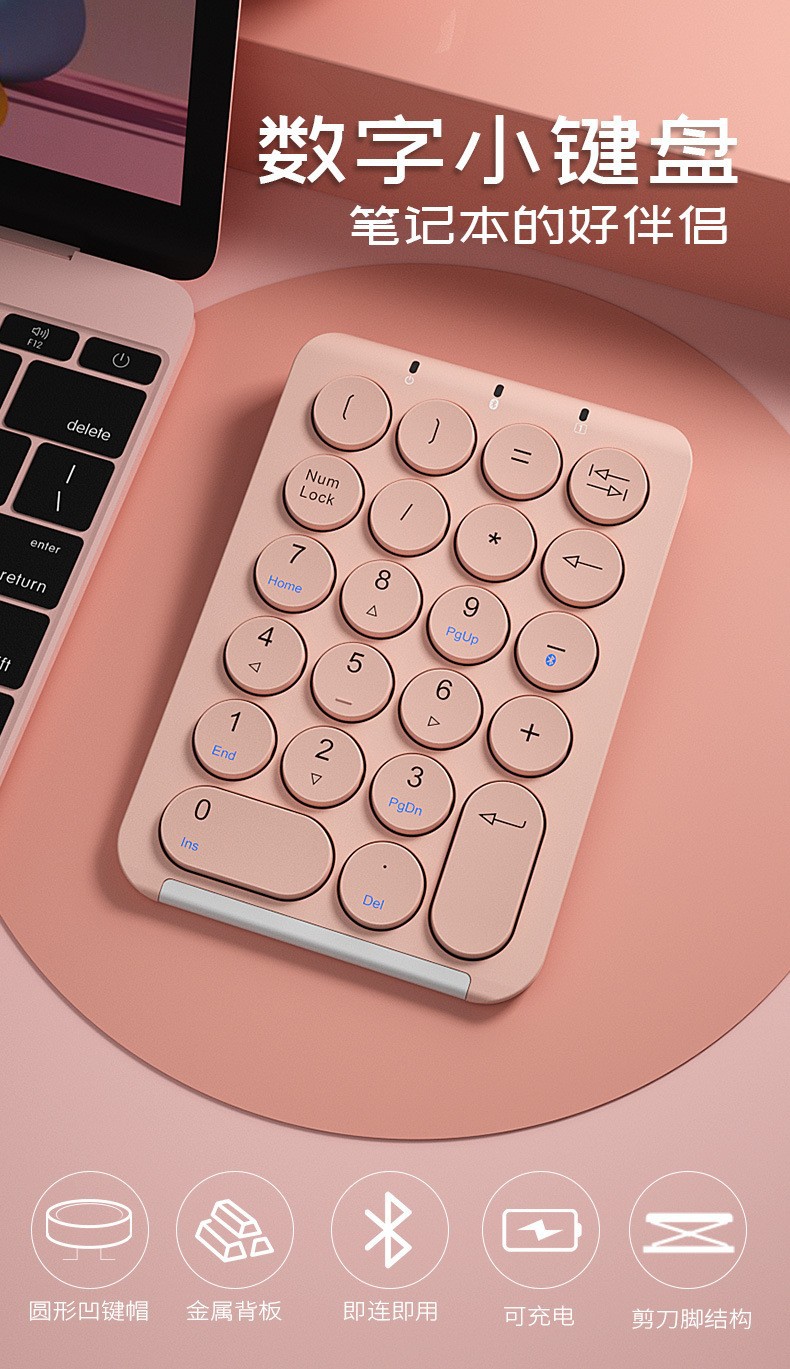 BOW Hangshi HB159 무선 블루투스 숫자 키패드 미니 귀여운 레트로 라운드 캡 회계 및 금융 유니버설