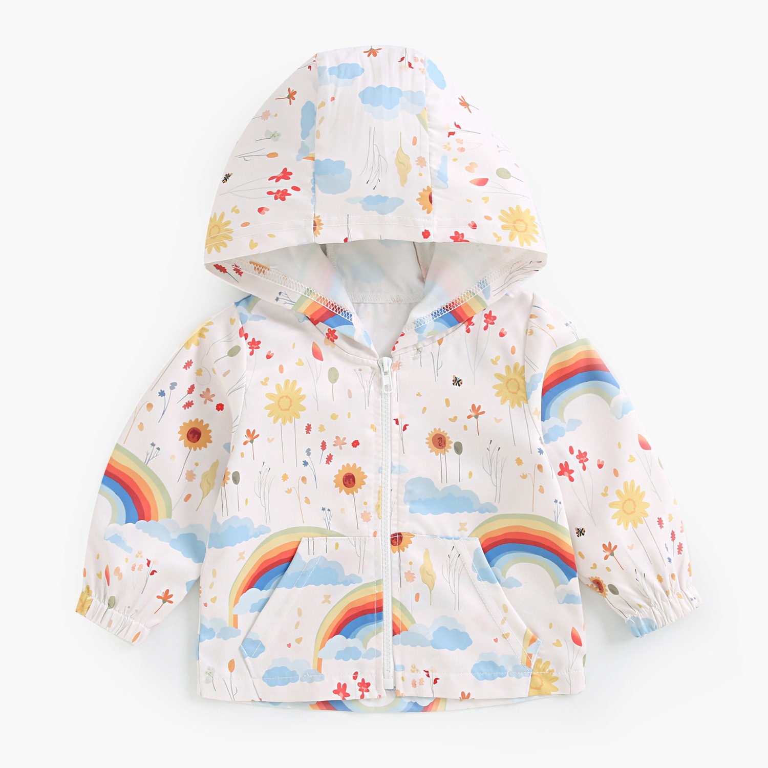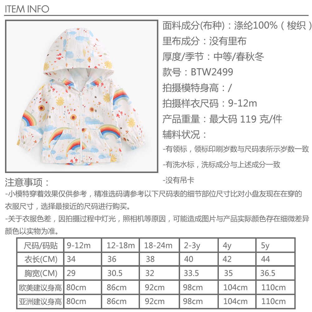 어린이 코트 가을과 겨울 어린이 방풍 코트 후드 재킷 아기 만화 레인보우 카디건 탑 봄과 가을 외출