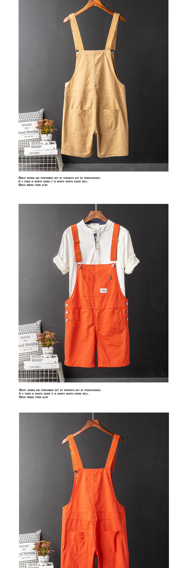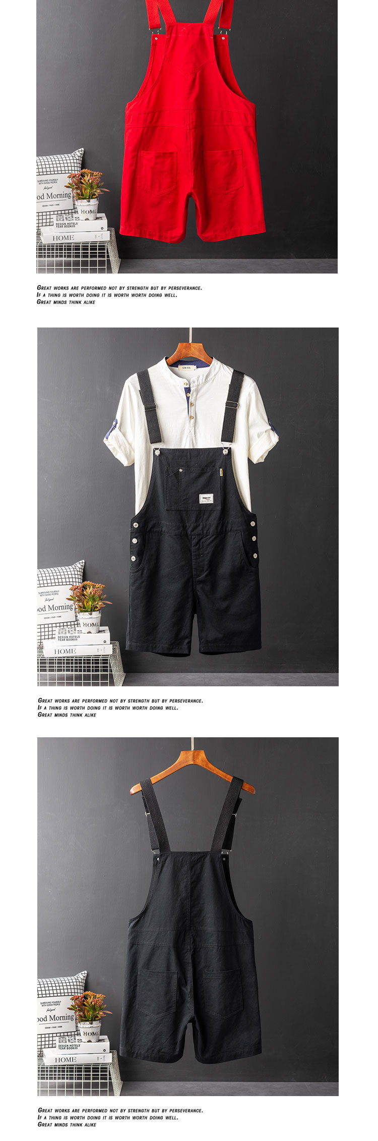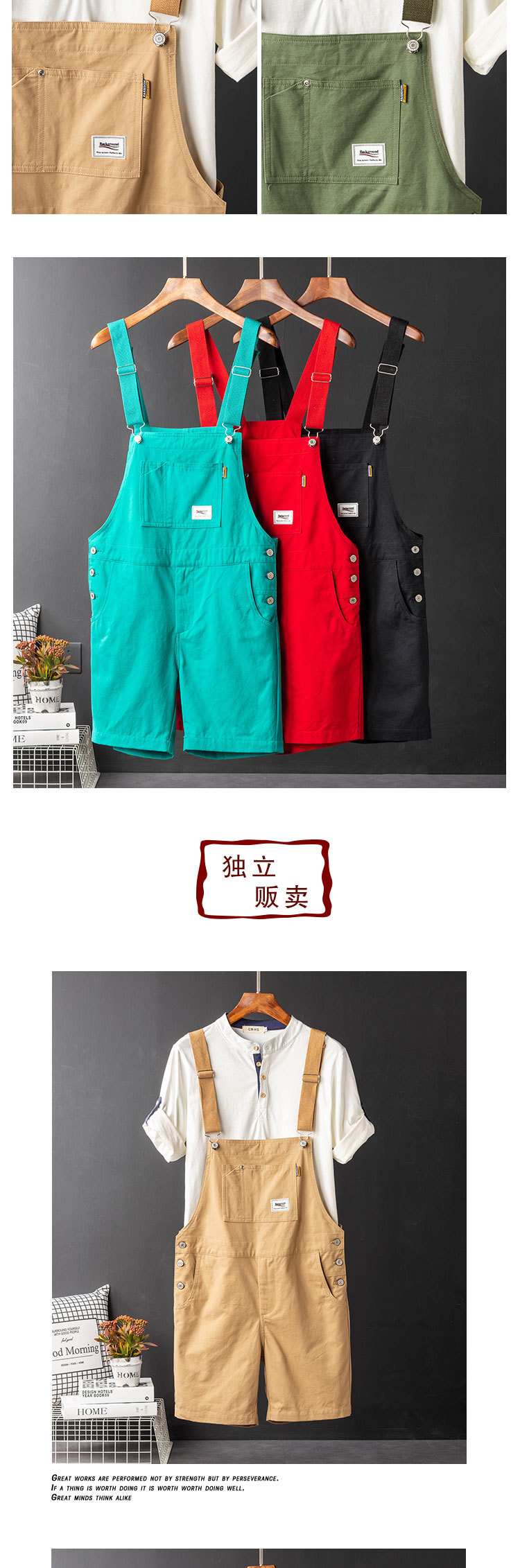 Ami Kaji Toker, 남성 여름 트렌디 브랜드 루즈 원피스 바지 남성 카키 빈티지 오버롤 반바지스토어 가기