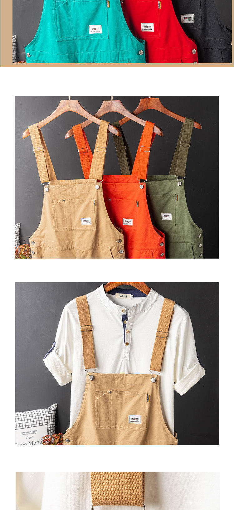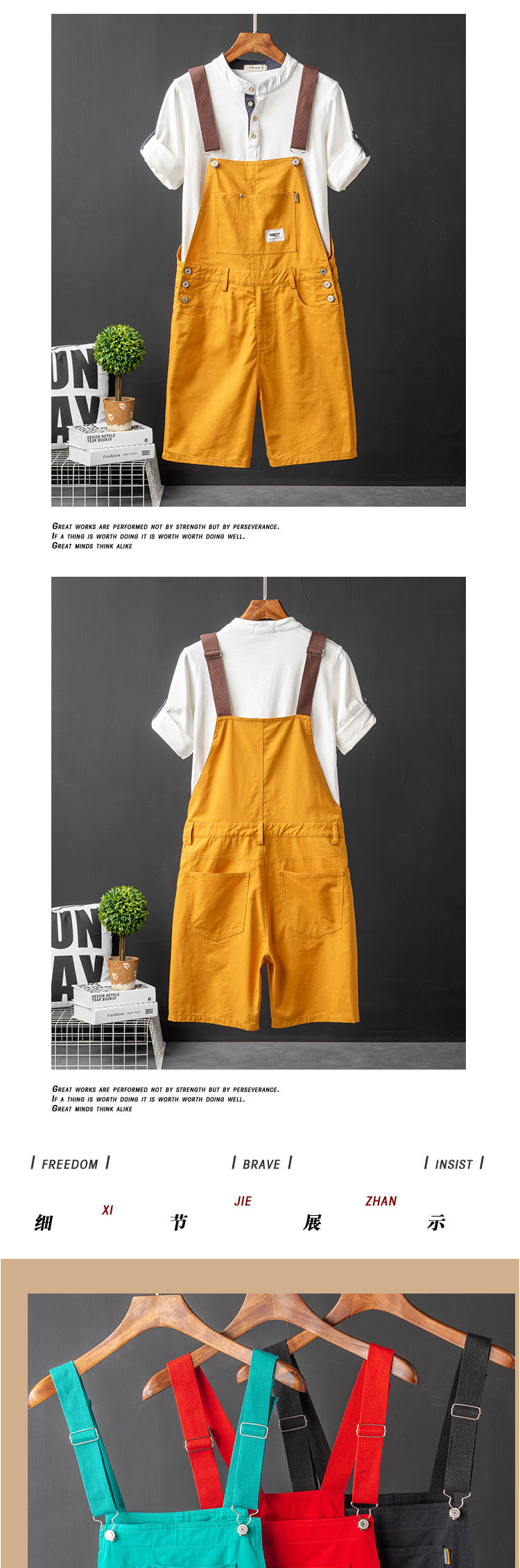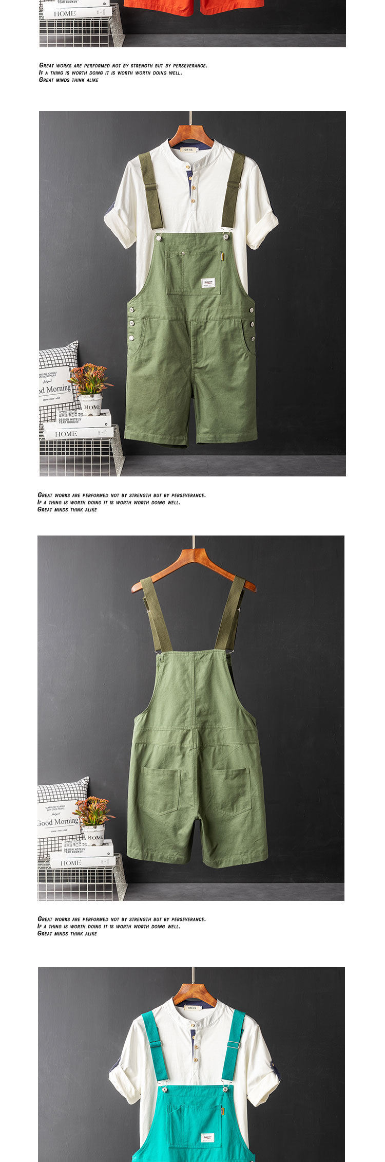 Ami Kaji Toker, 남성 여름 트렌디 브랜드 루즈 원피스 바지 남성 카키 빈티지 오버롤 반바지스토어 가기