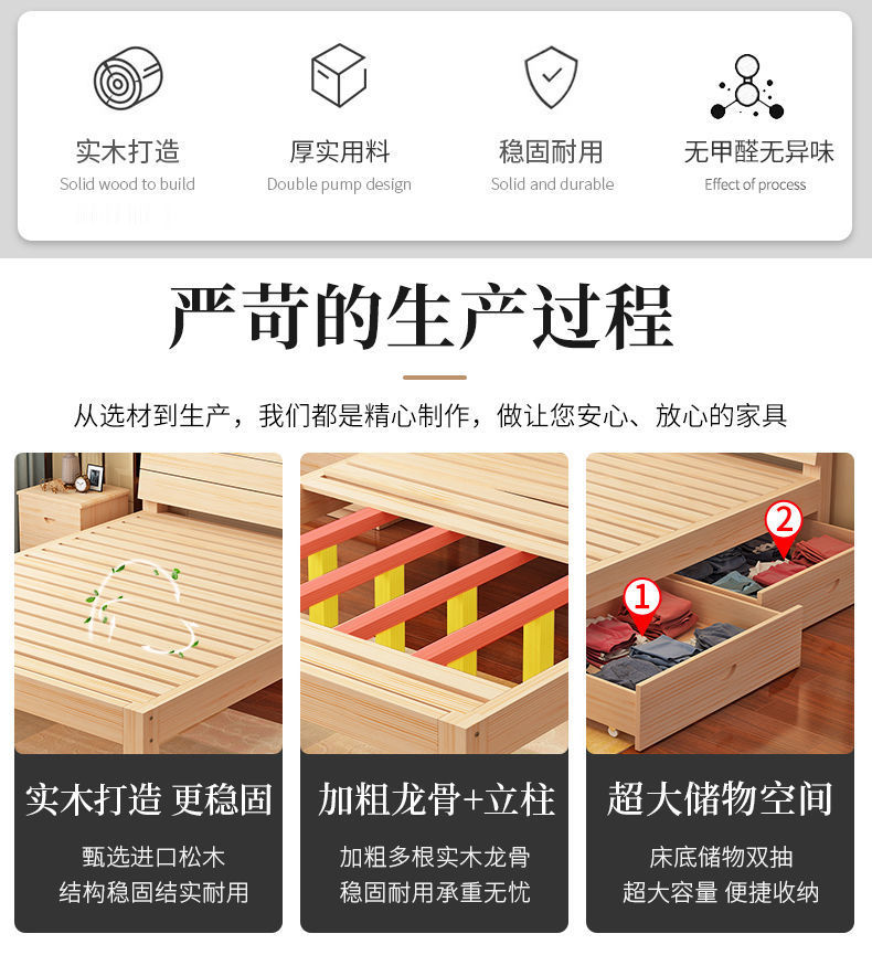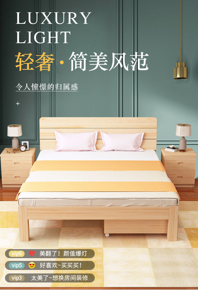 침대 단단한 나무 1.8 m 가구 침실 더블침대 1.5 m 접합 침대 1.2 m 싱글 침대 1 m 침대 랙 렌탈 룸스토어 가기