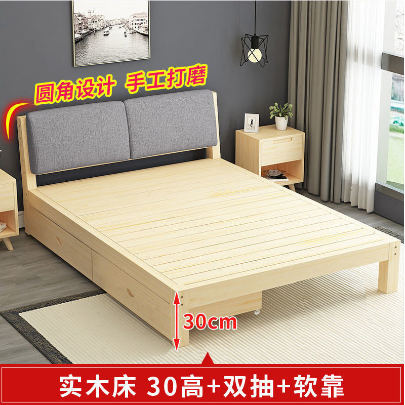 • 30 하이 네이키드 침대 + 더블 서랍 - 원목 풀 스타일