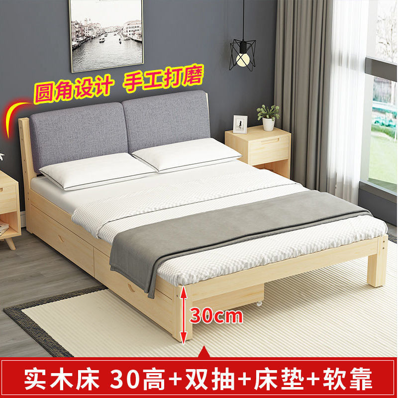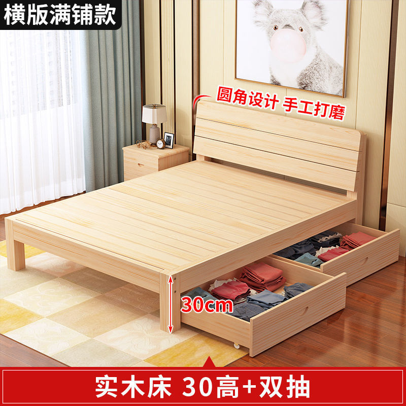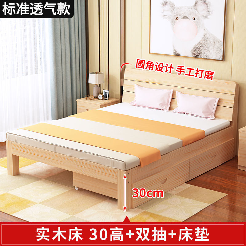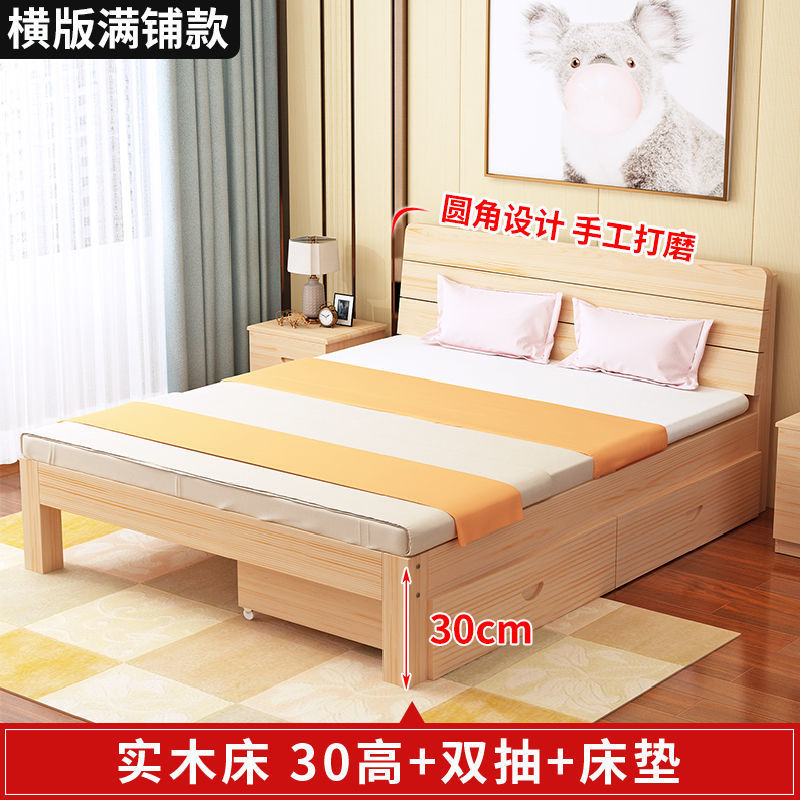 • 30 하이 네이키드 침대 + 더블 서랍 + 매트리스 - 원목 풀 스타일