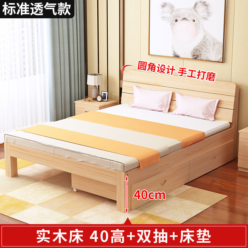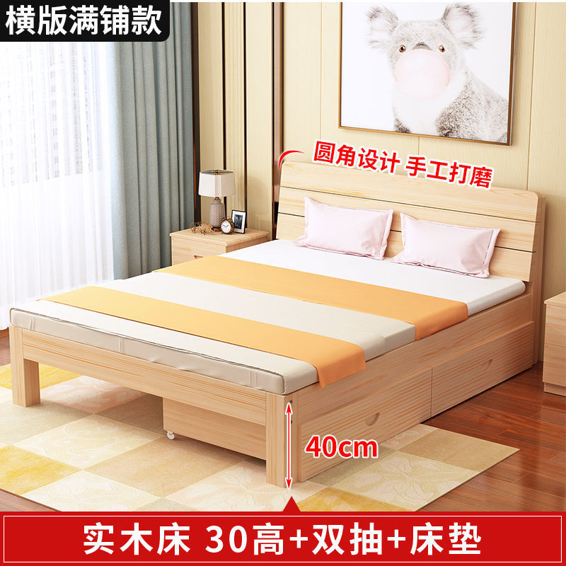 • 40 하이 네이키드 침대 + 더블 서랍 + 매트리스 - 원목 풀 스타일