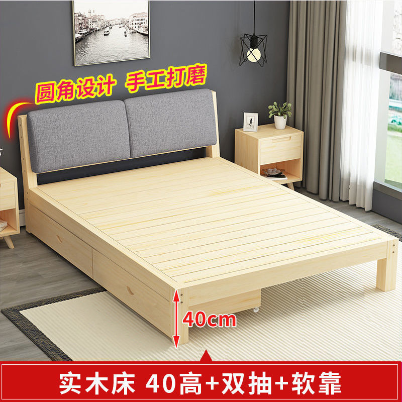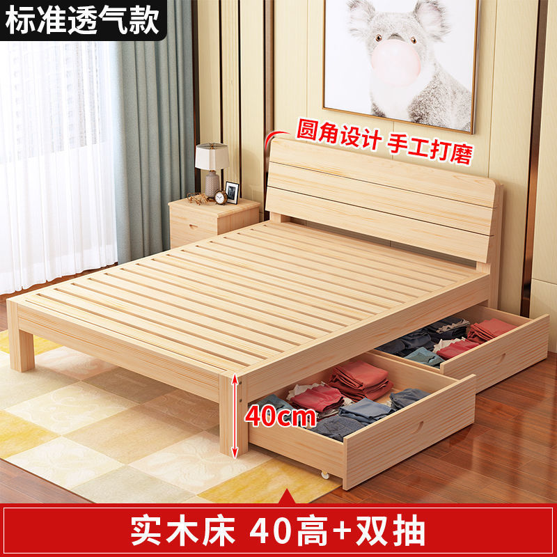 • 40 하이 네이키드 침대 + 더블 서랍 - 원목 풀 스타일