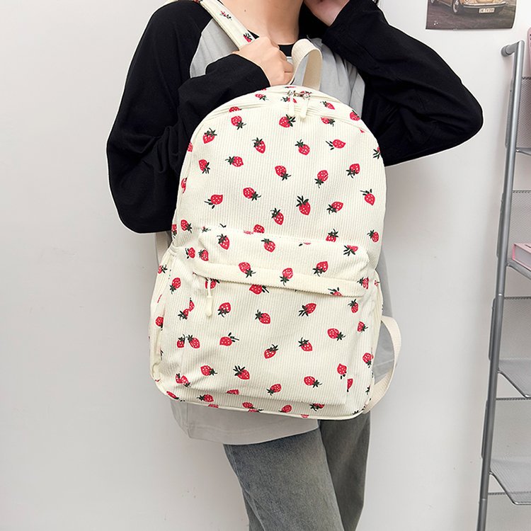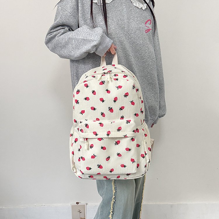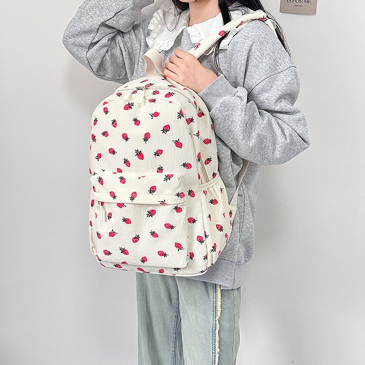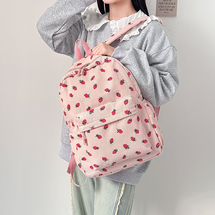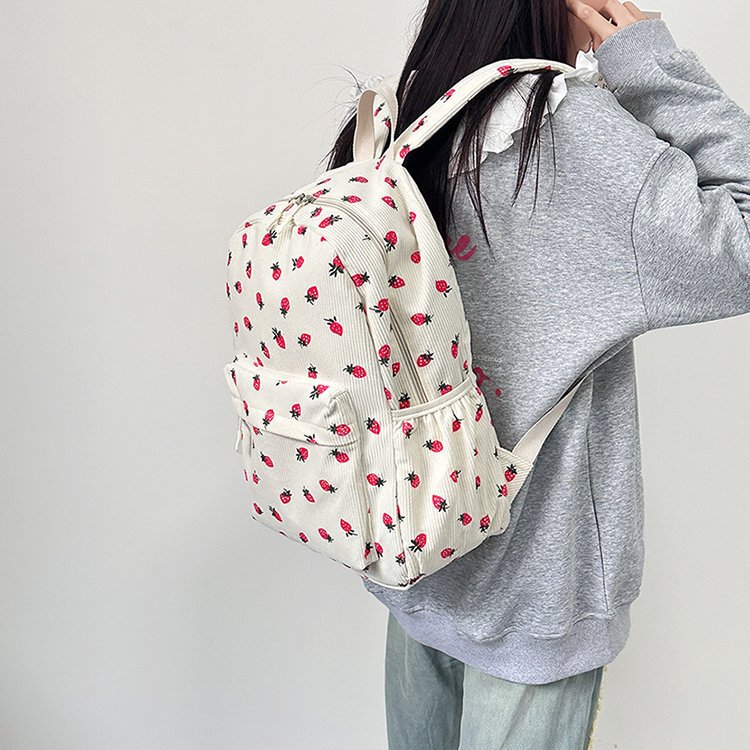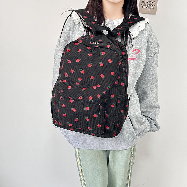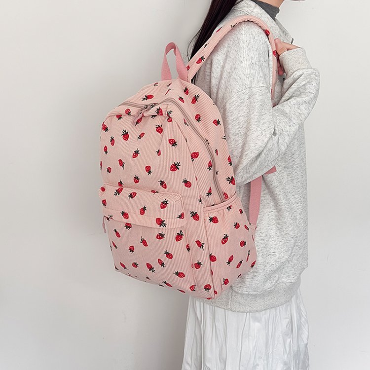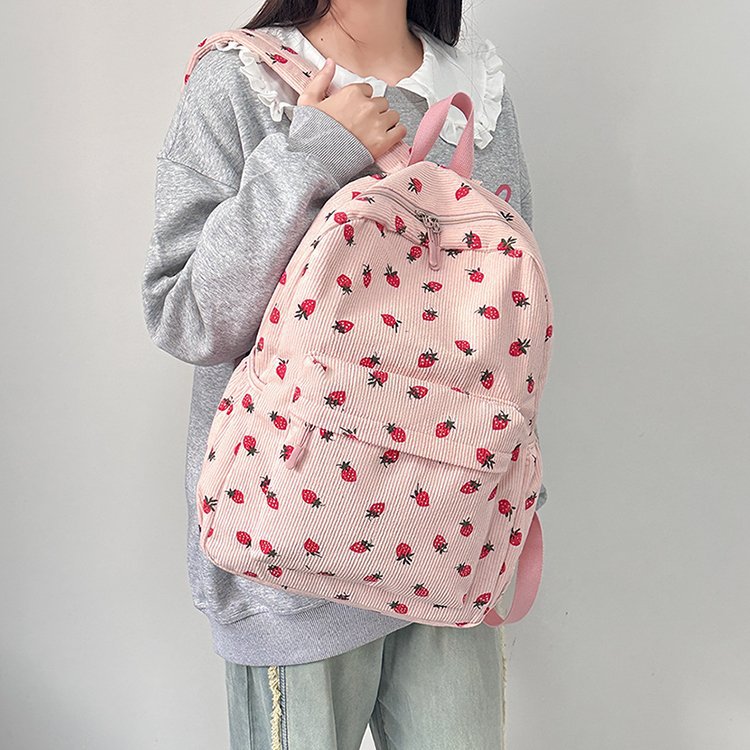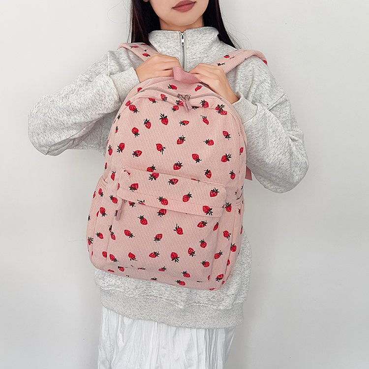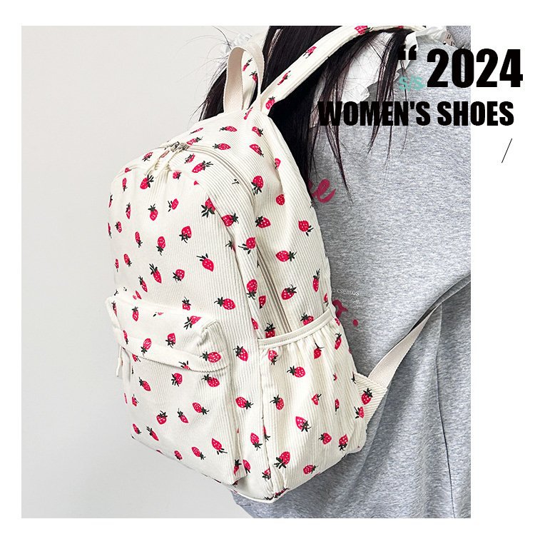 작은 신선한 예술적 복고풍 딸기 올매치 Ins 일본 스타일 간단한 캐주얼 소녀 학생 배낭 귀여운 틈새스토어 가기