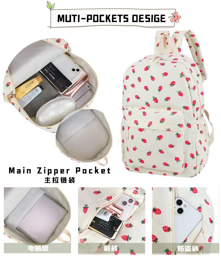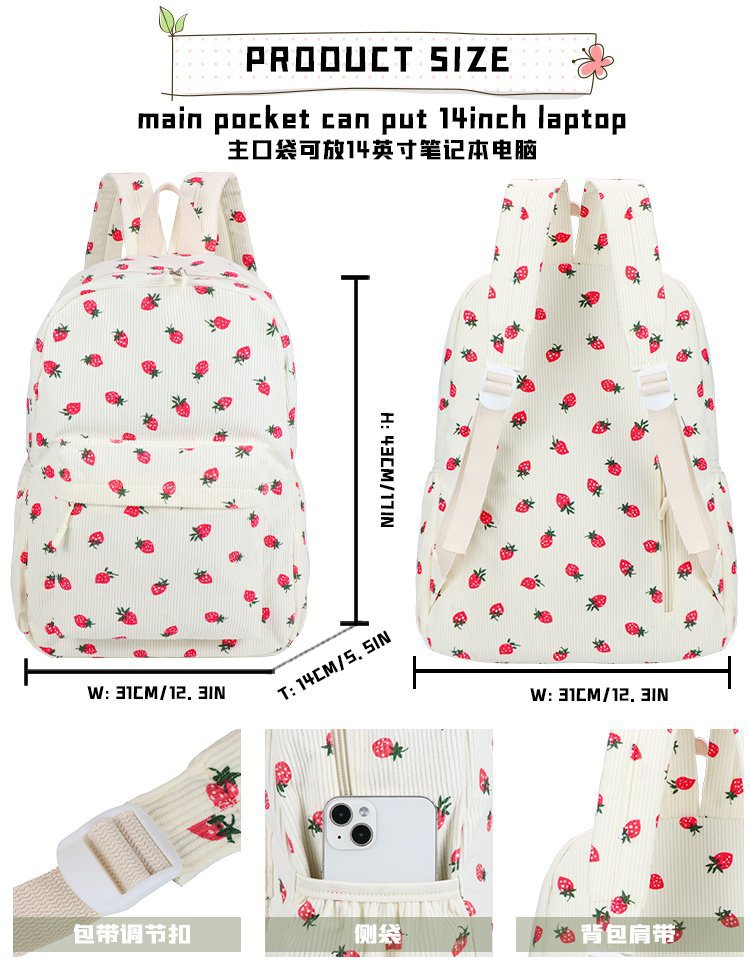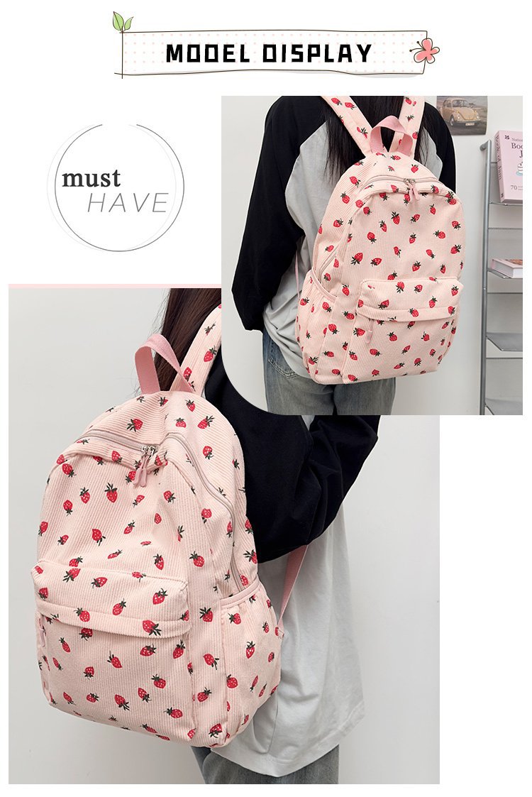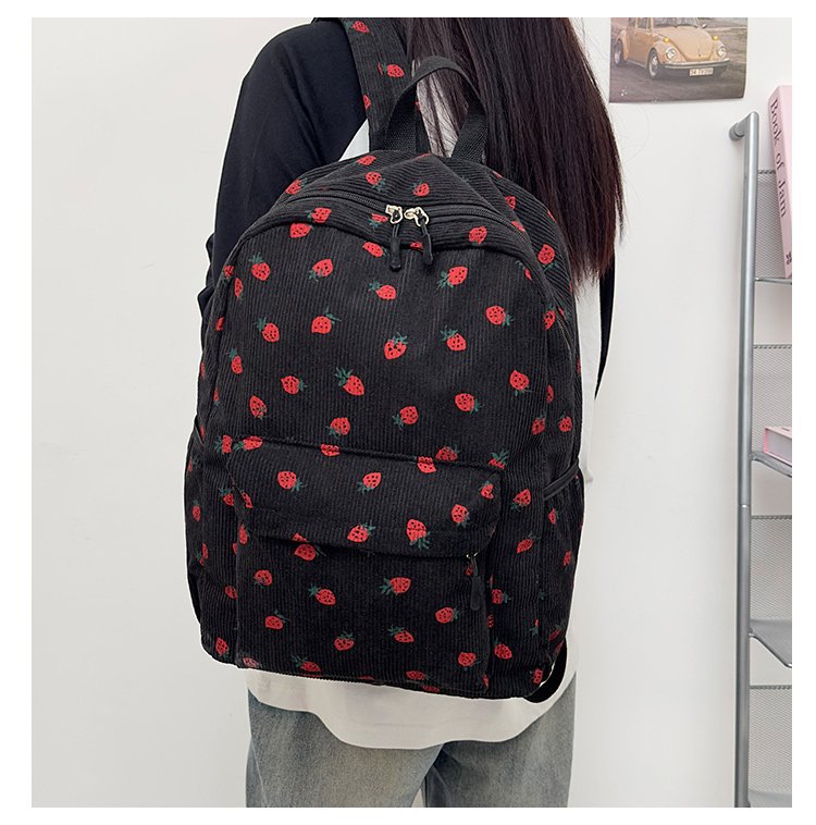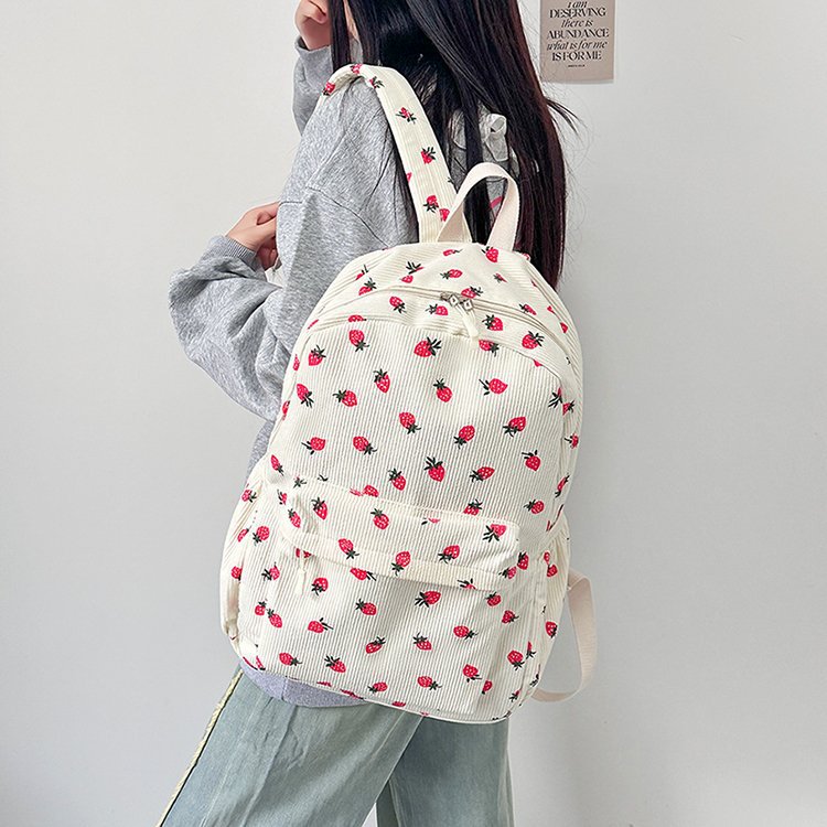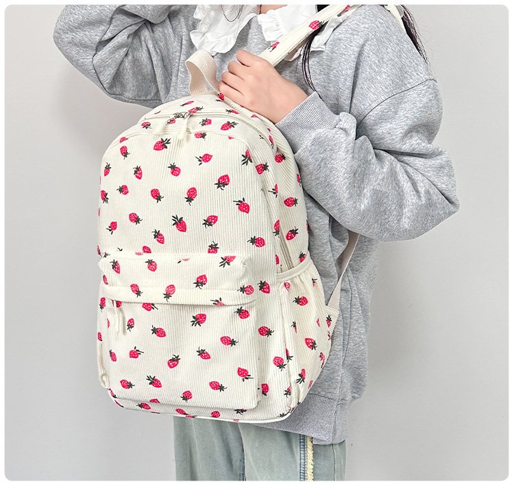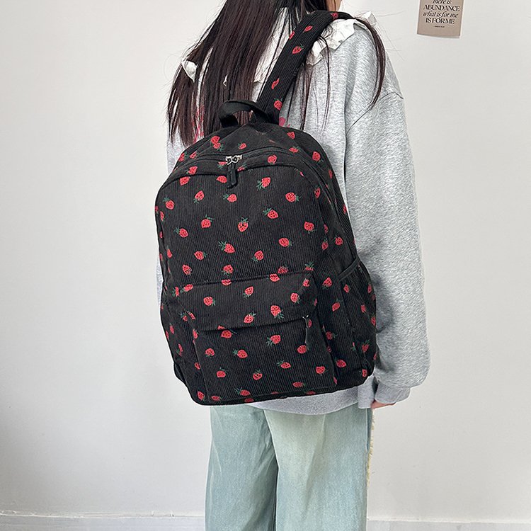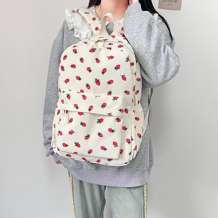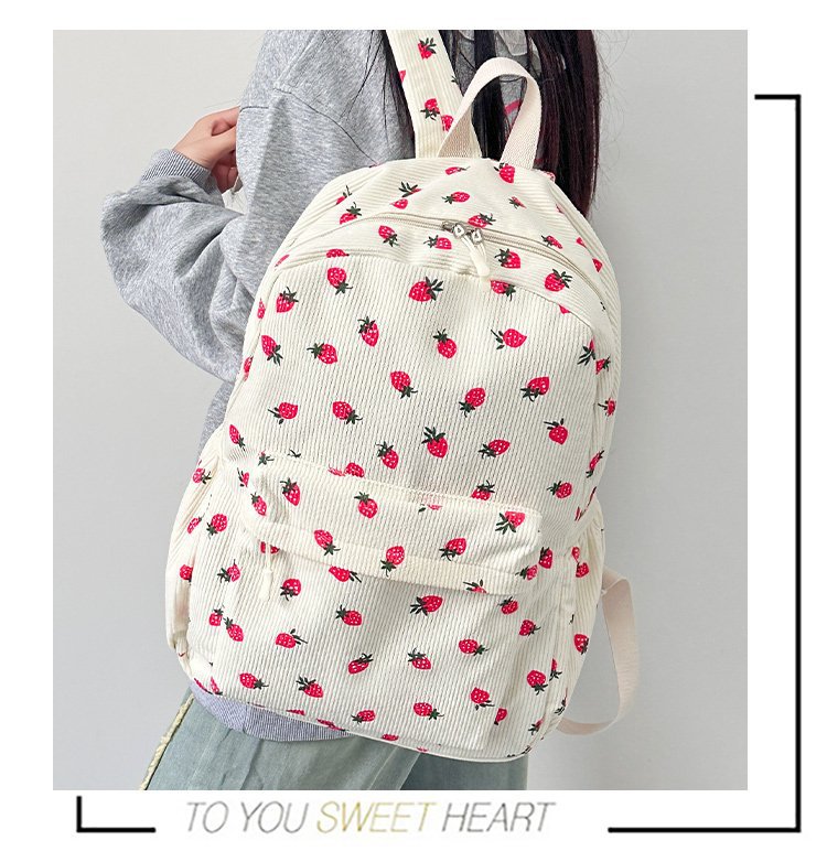 작은 신선한 예술적 복고풍 딸기 올매치 Ins 일본 스타일 간단한 캐주얼 소녀 학생 배낭 귀여운 틈새스토어 가기