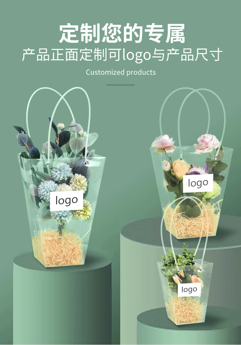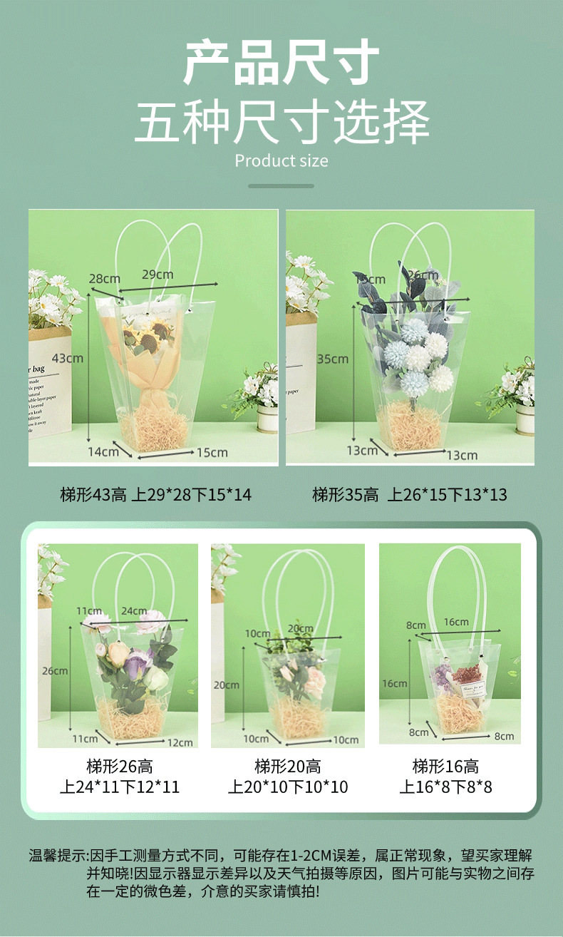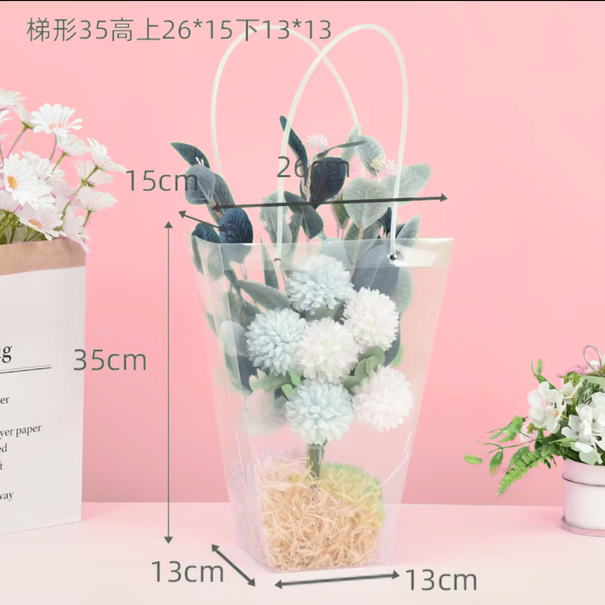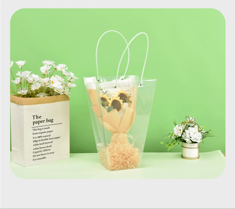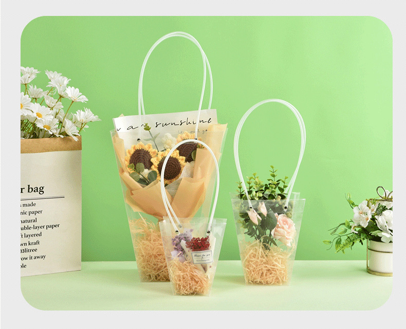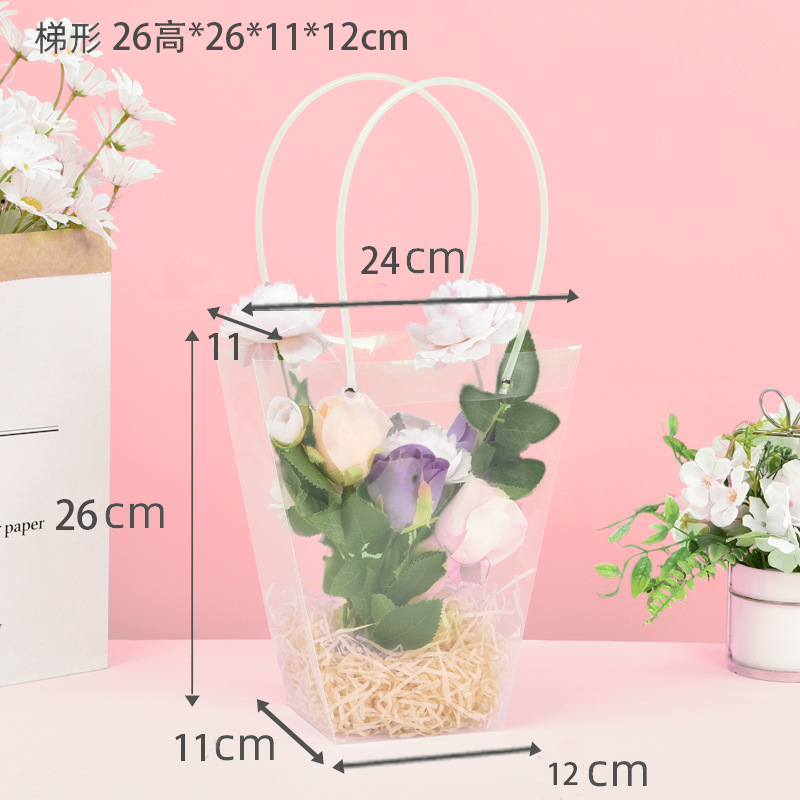 사다리꼴 투명한 꽃 토트 백 교사의 날 줄기 꽃 번들 포장 가방 광장 케이크 화분 식물 선물 가방 T 자형