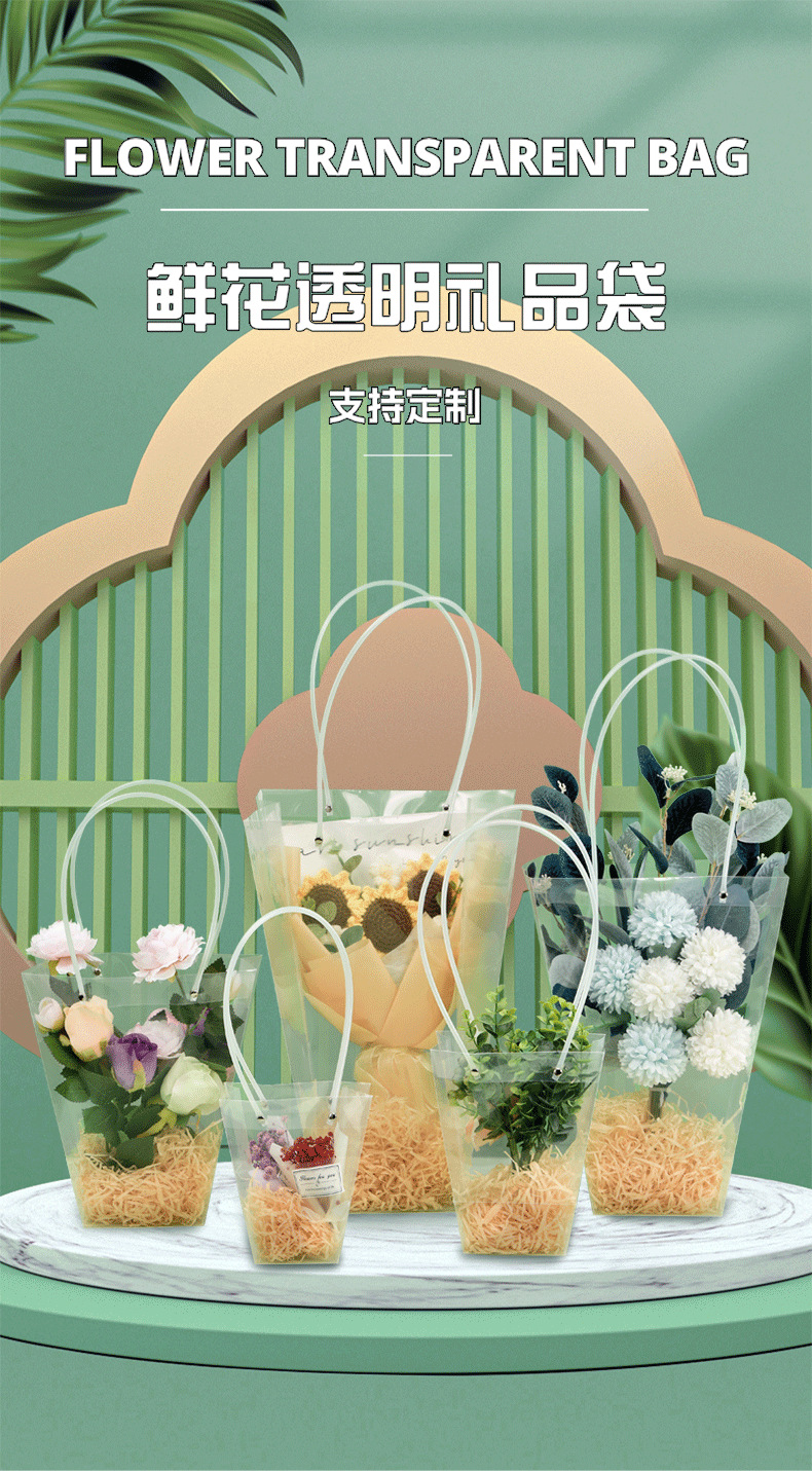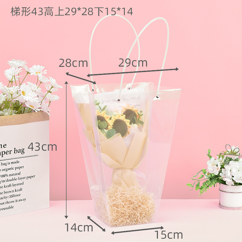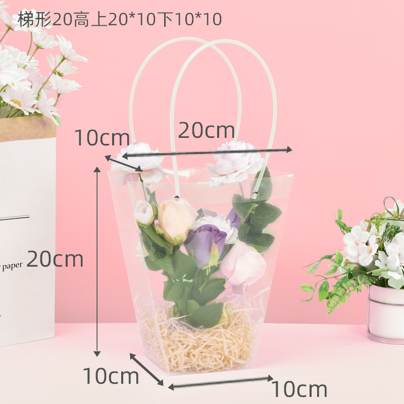 사다리꼴 투명한 꽃 토트 백 교사의 날 줄기 꽃 번들 포장 가방 광장 케이크 화분 식물 선물 가방 T 자형스토어 가기