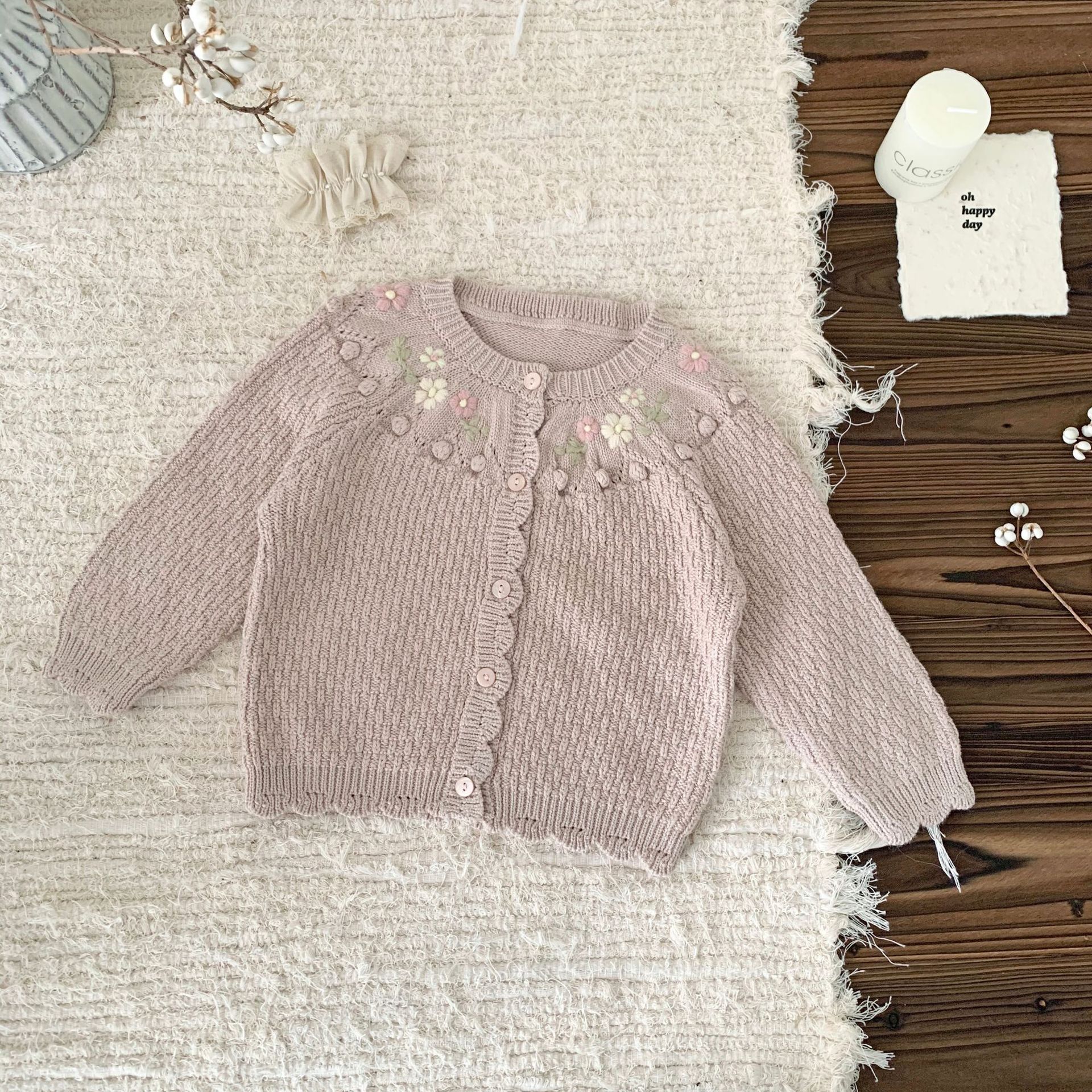 Ctuemily 가을과 겨울 국경 간 아기 소녀 자수 카디건 스웨터 여성 보물 크로 셰 뜨개질 공 Raglan 긴 소매 코트