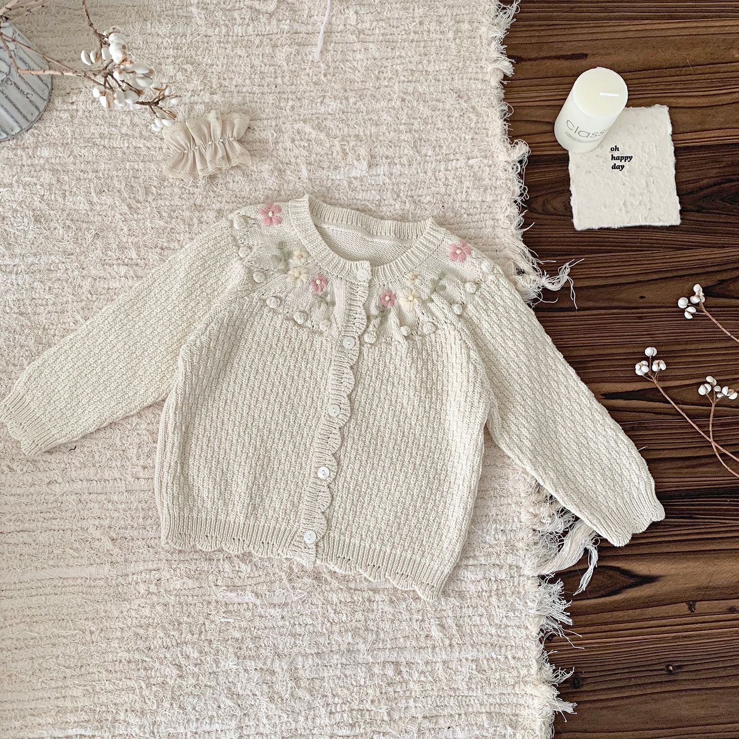 Ctuemily 가을과 겨울 국경 간 아기 소녀 자수 카디건 스웨터 여성 보물 크로 셰 뜨개질 공 Raglan 긴 소매 코트스토어 가기