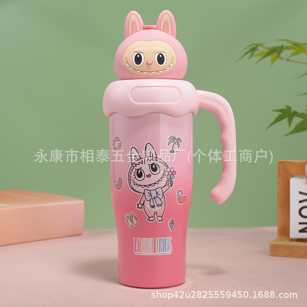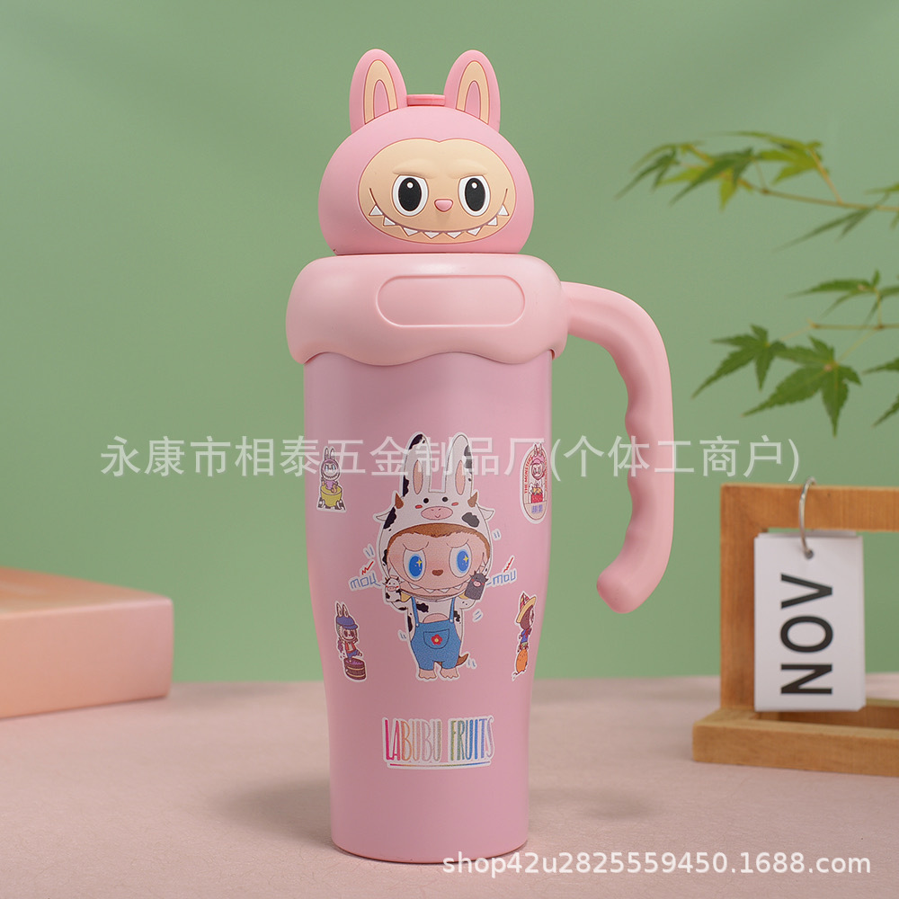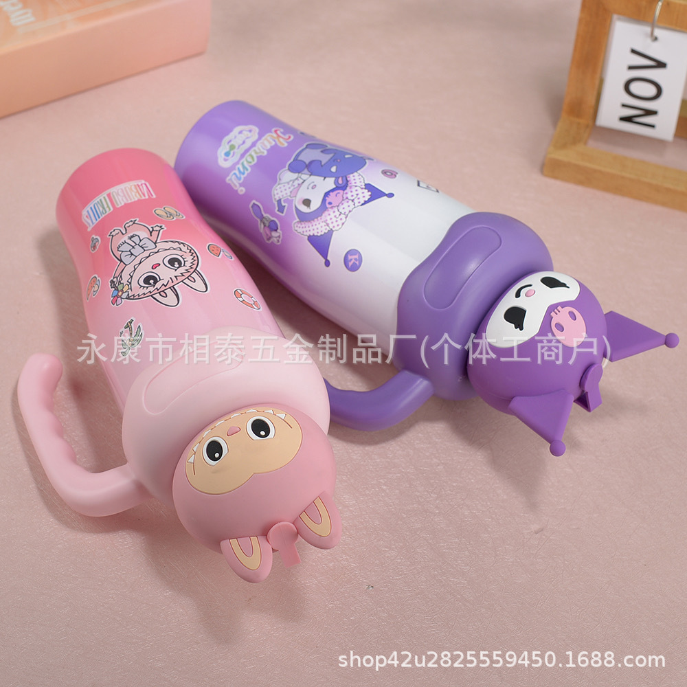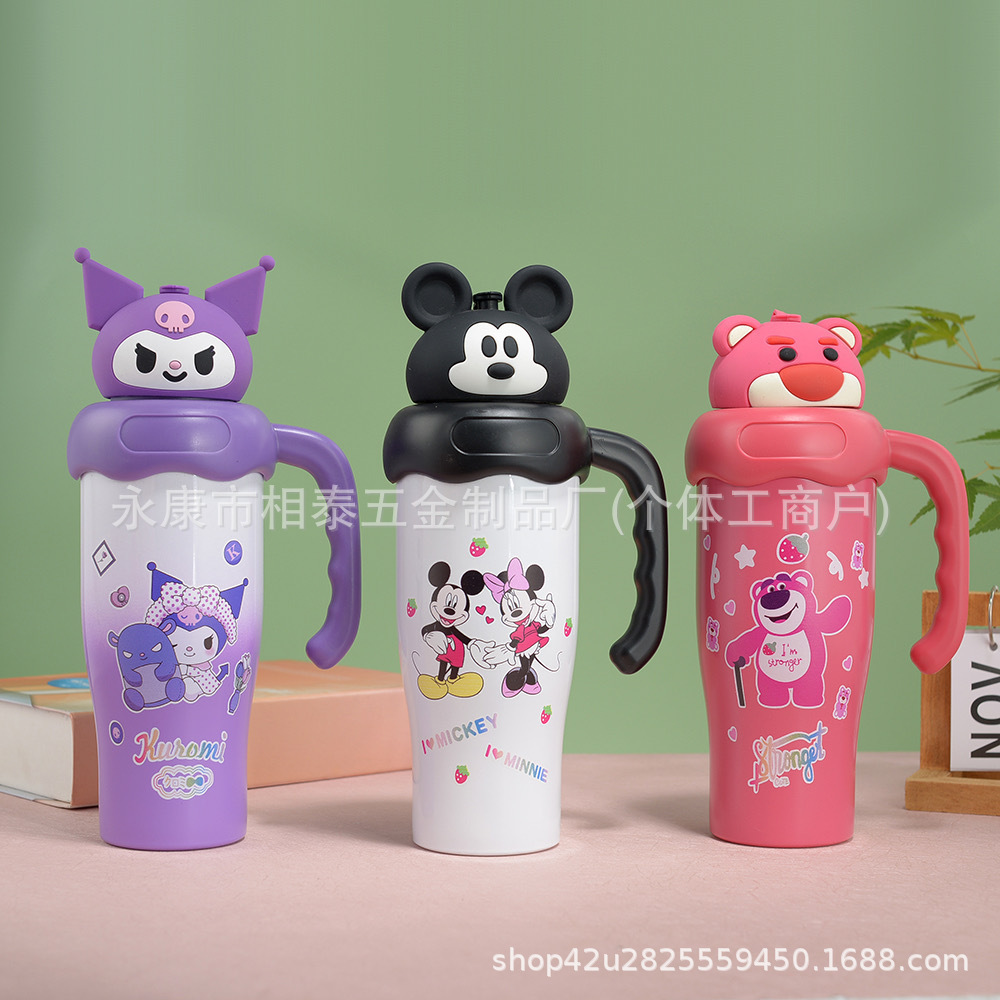 새로운 귀여운 캐릭터 만화 무늬 손잡이 보온병 스테인리스 진공 휴대용 고급스러운 물컵 맞춤 제작