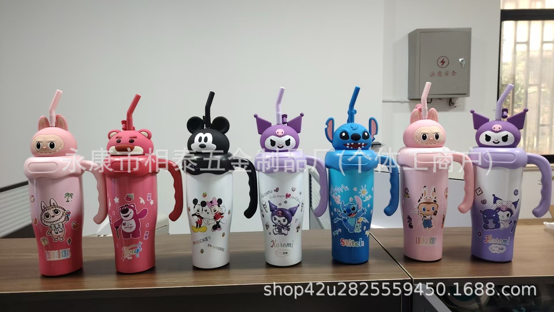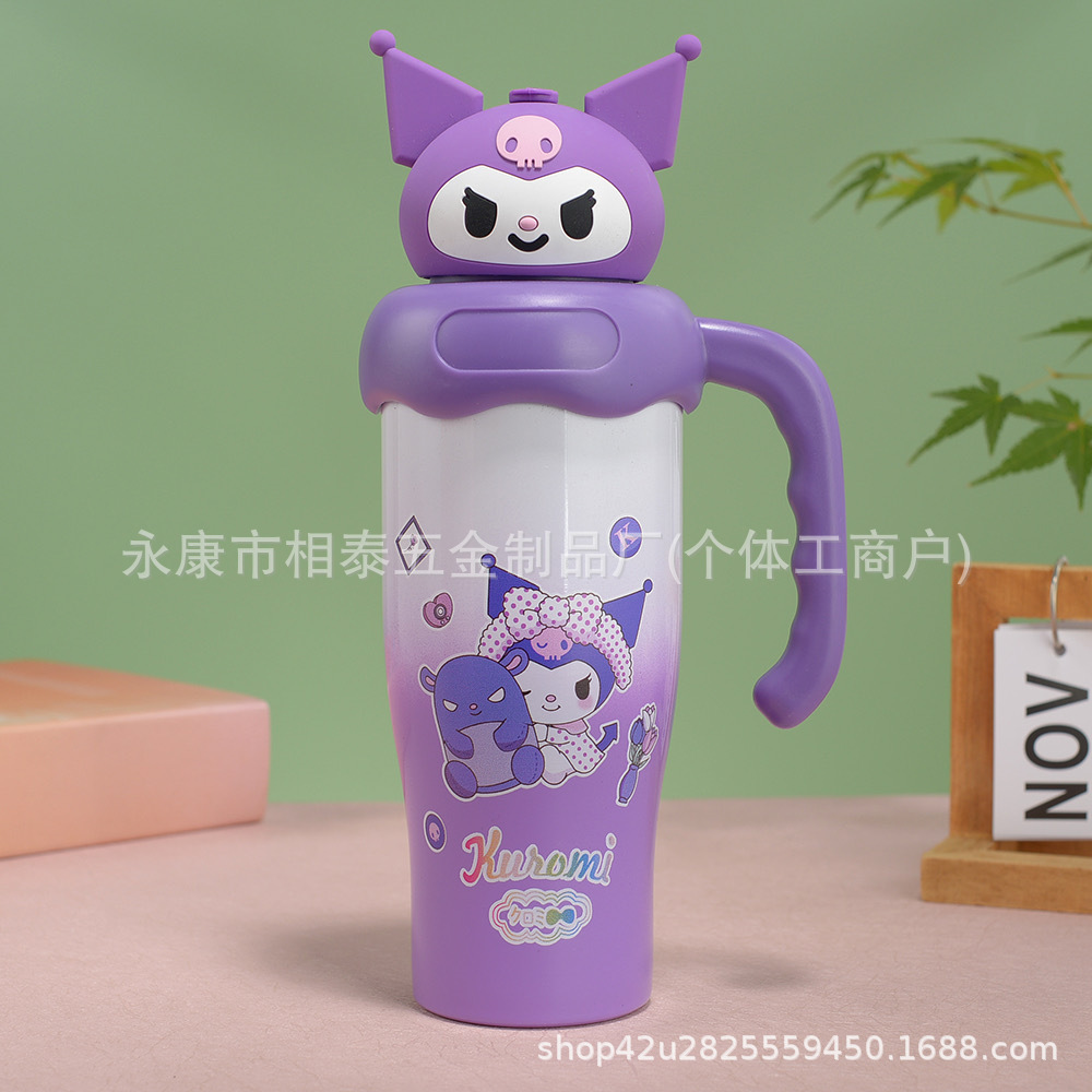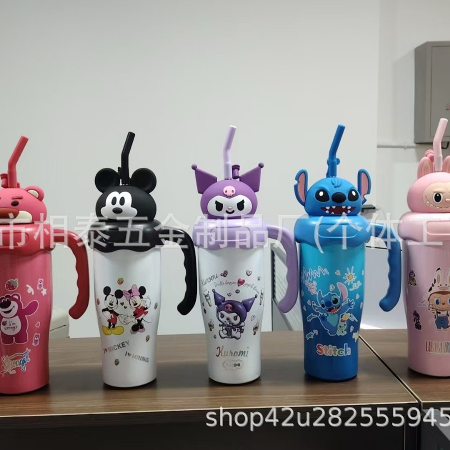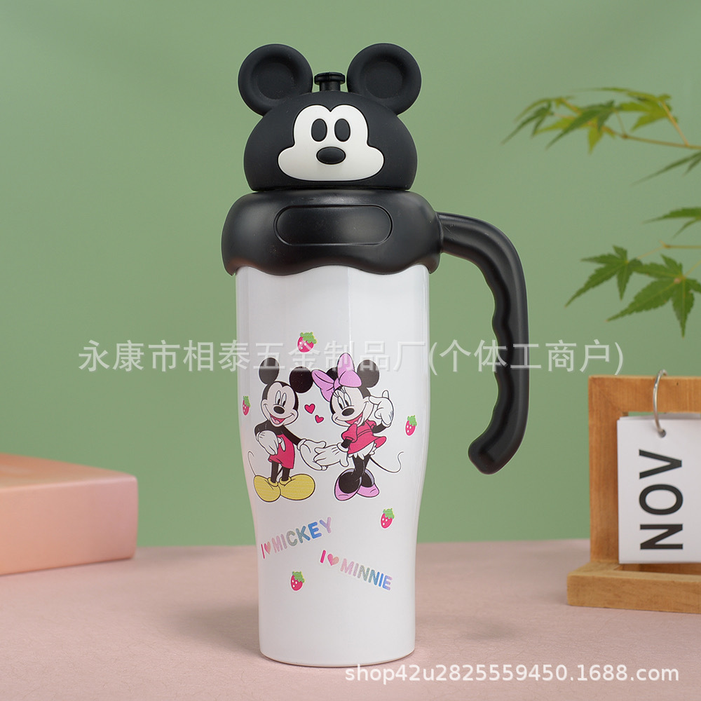 새로운 귀여운 캐릭터 만화 무늬 손잡이 보온병 스테인리스 진공 휴대용 고급스러운 물컵 맞춤 제작