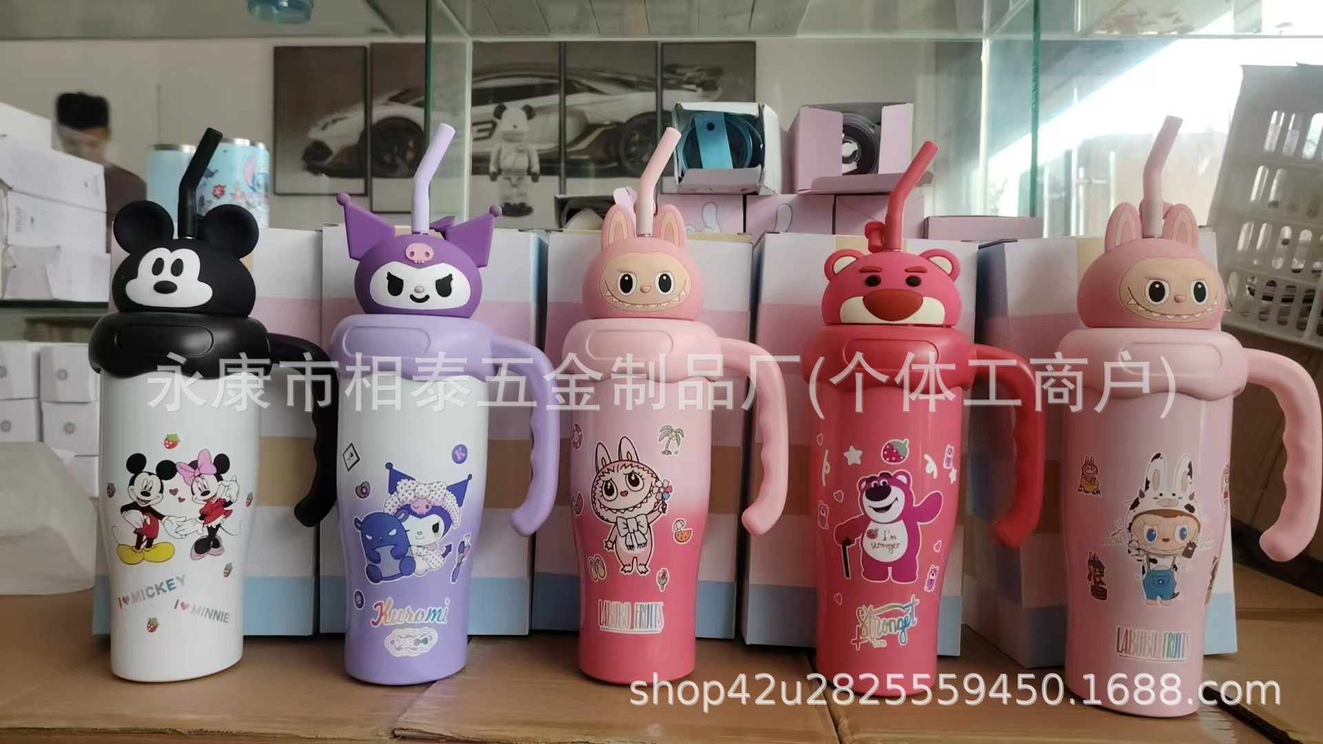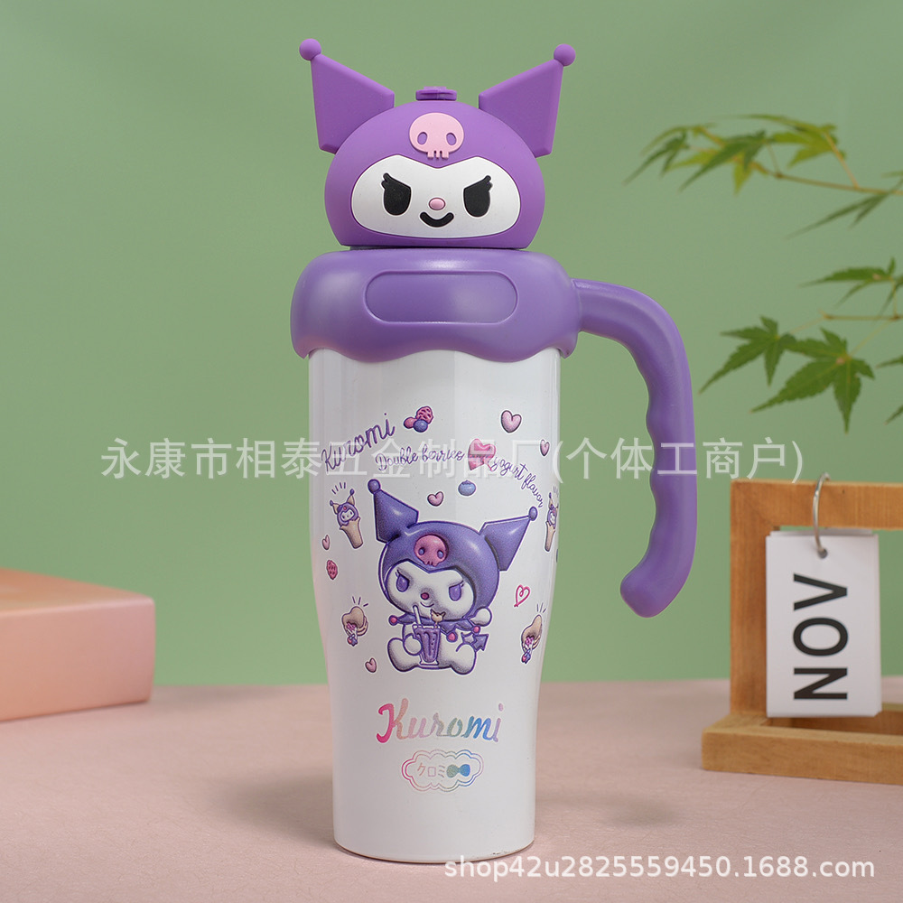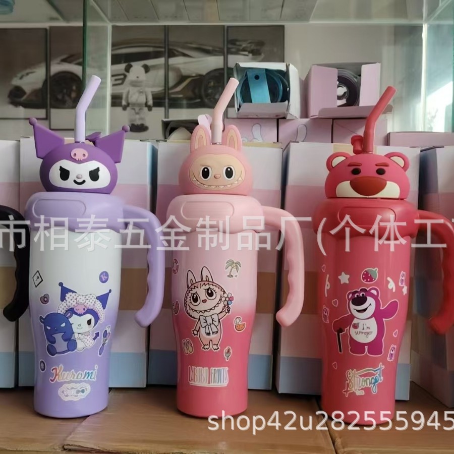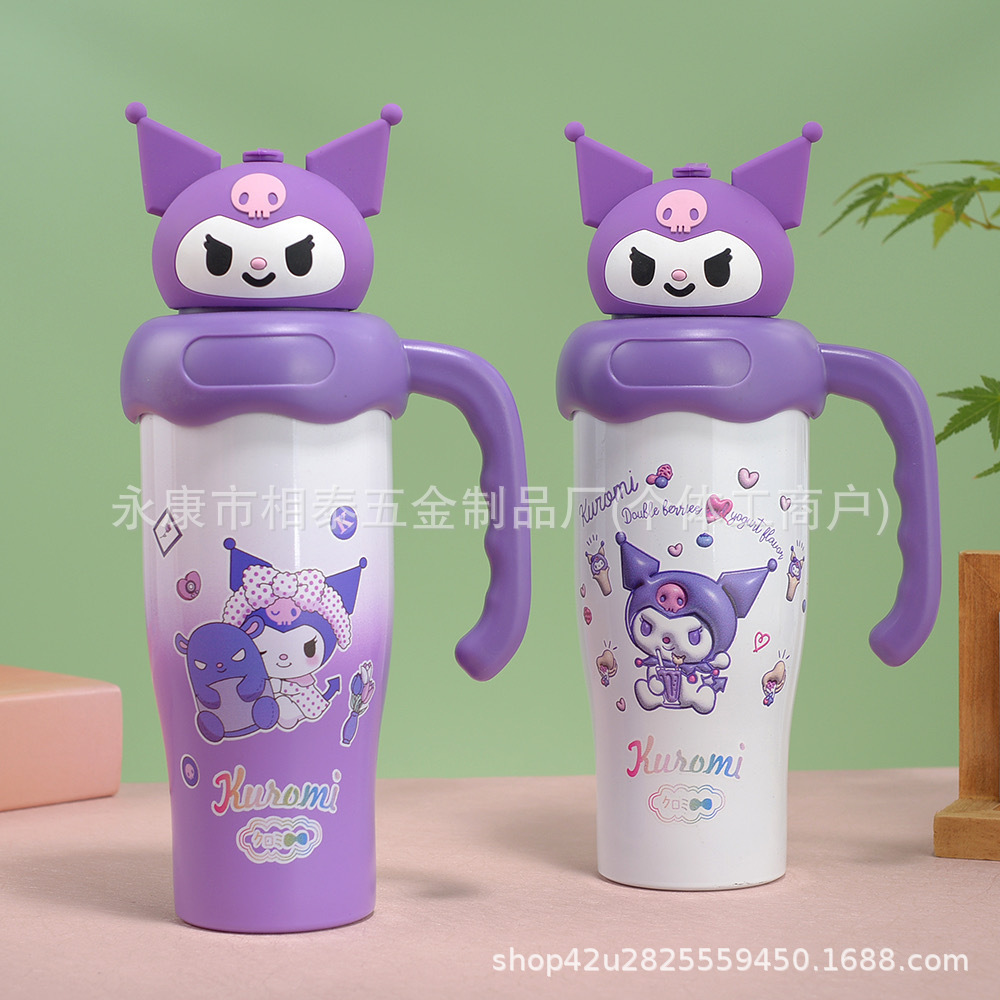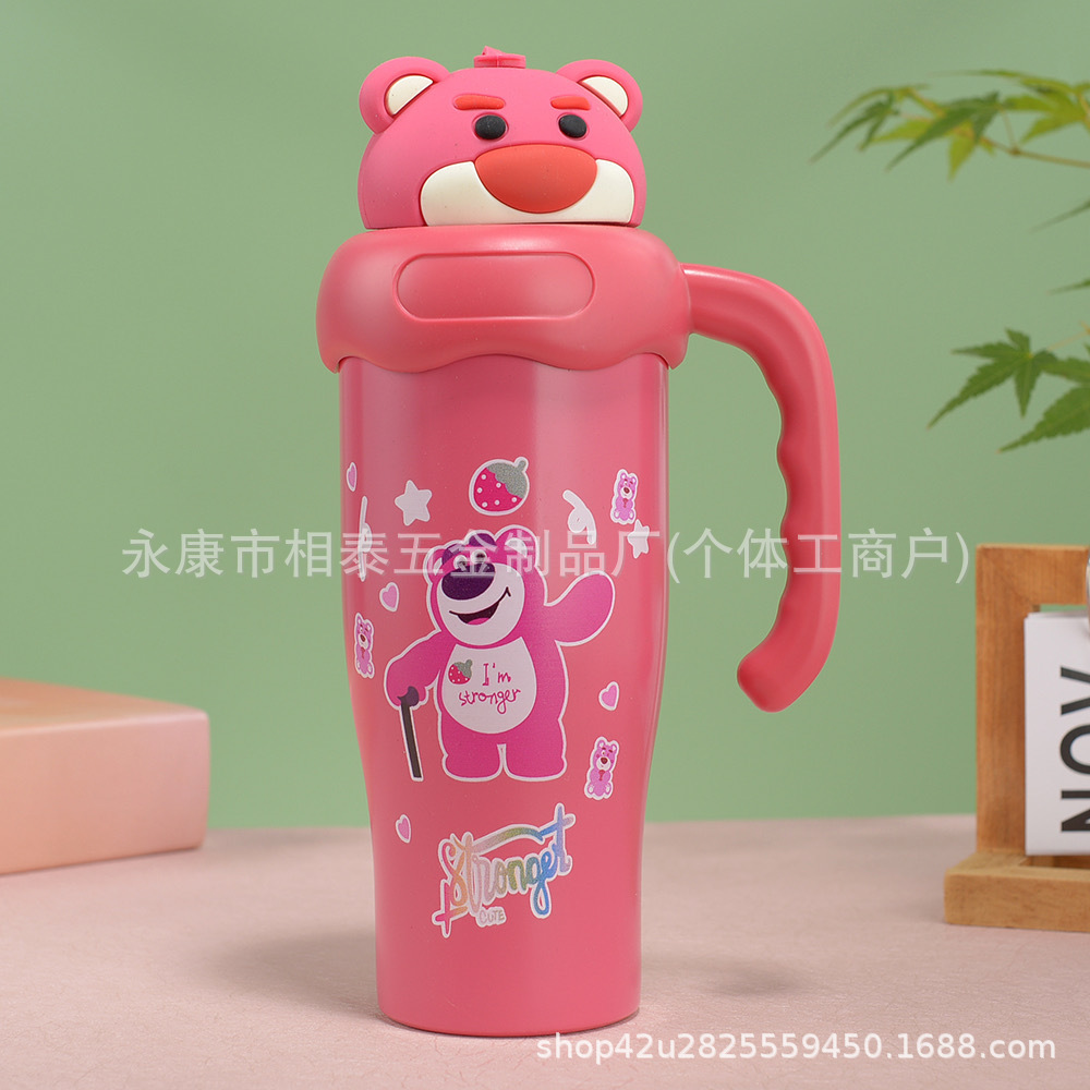 새로운 귀여운 캐릭터 만화 무늬 손잡이 보온병 스테인리스 진공 휴대용 고급스러운 물컵 맞춤 제작스토어 가기