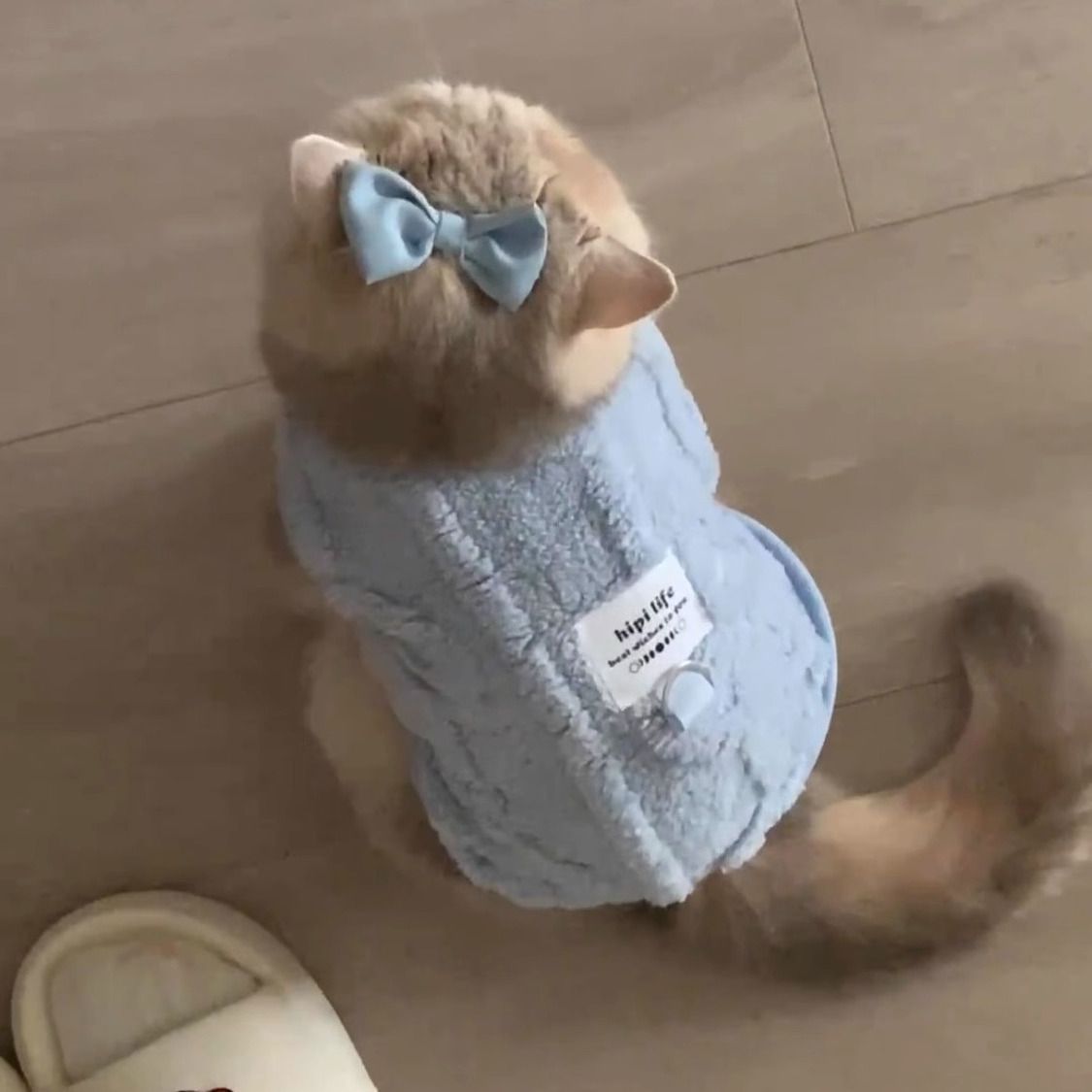 고양이 옷 가을과 겨울 안티 헤어 실버 점진적 머펫 고양이 고양이 고양이 고양이 파란 고양이 애완 동물 두 다리 따뜻한 조끼