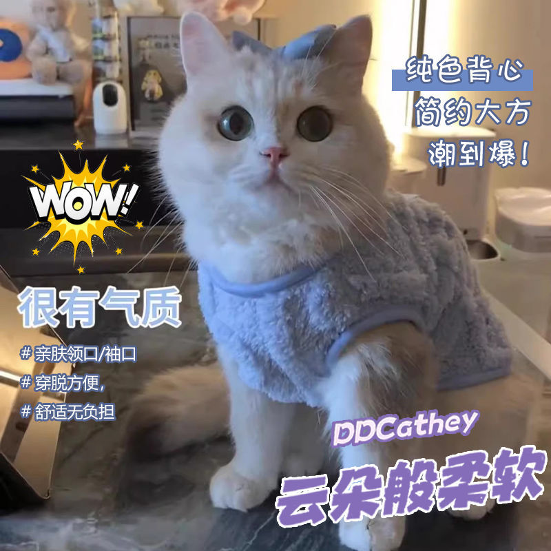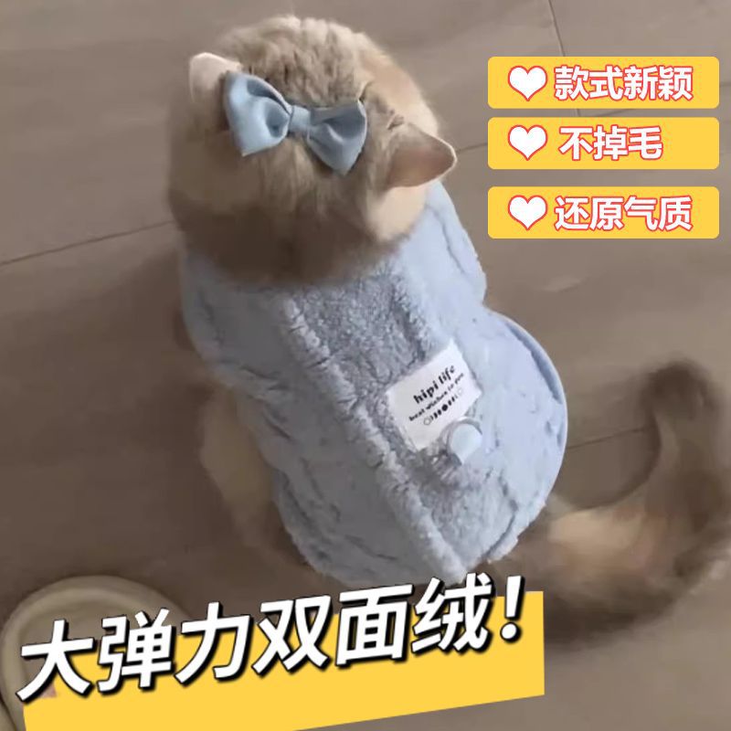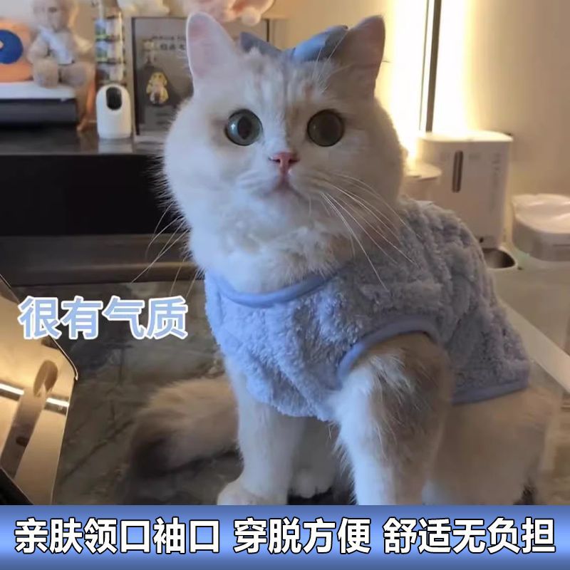 고양이 옷 가을과 겨울 안티 헤어 실버 점진적 머펫 고양이 고양이 고양이 고양이 파란 고양이 애완 동물 두 다리 따뜻한 조끼스토어 가기
