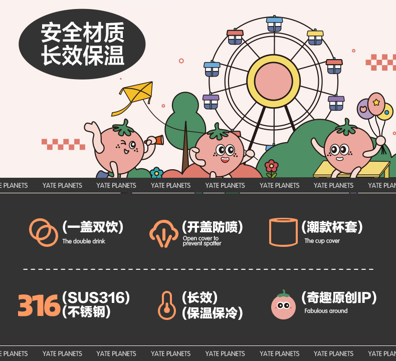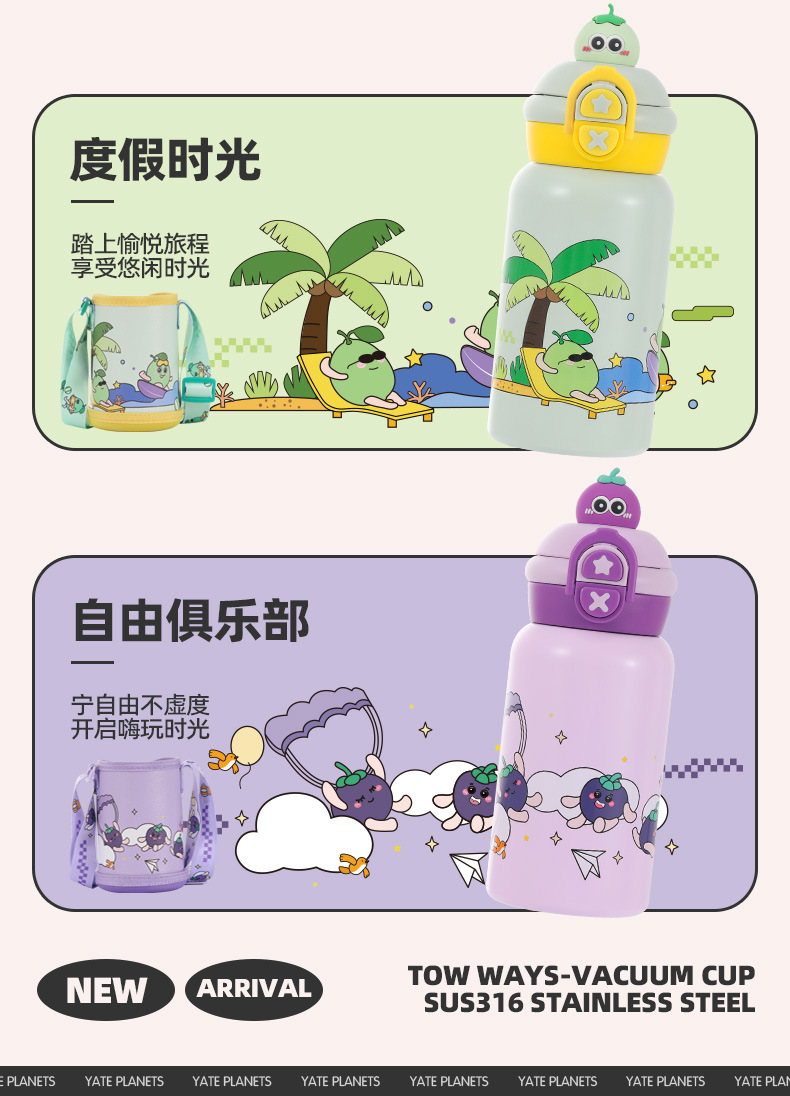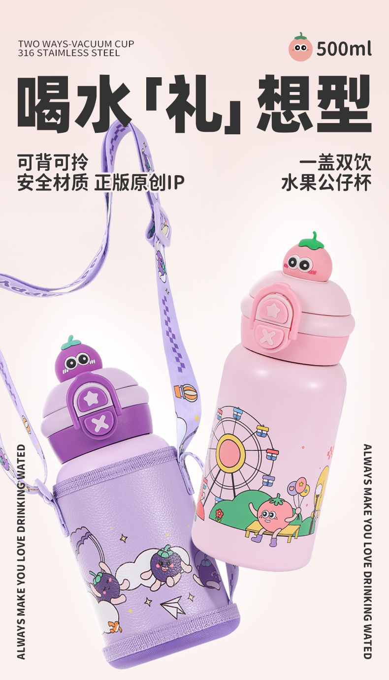 더블 음료 어린이 보온병 컵 316 스테인레스 스틸 높은 가치 귀여운 학생 휴대용 유치원 아기 밀짚 컵