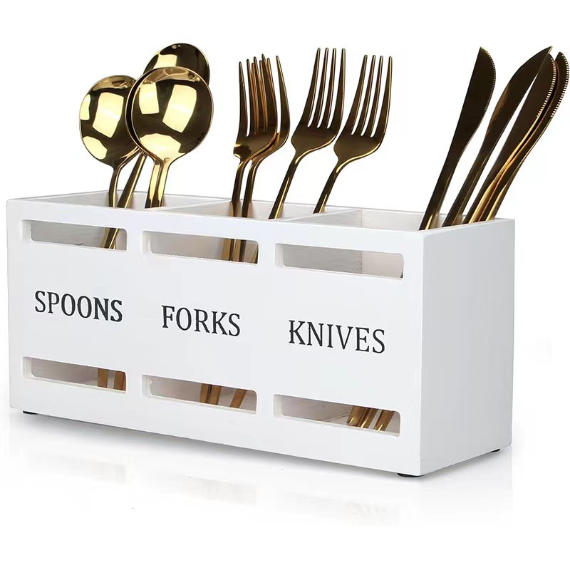 나무 흰색 저장 상자 레스토랑 주방 식기 상자 분류 상자 저장 가정용 식탁 젓가락 포크 상자