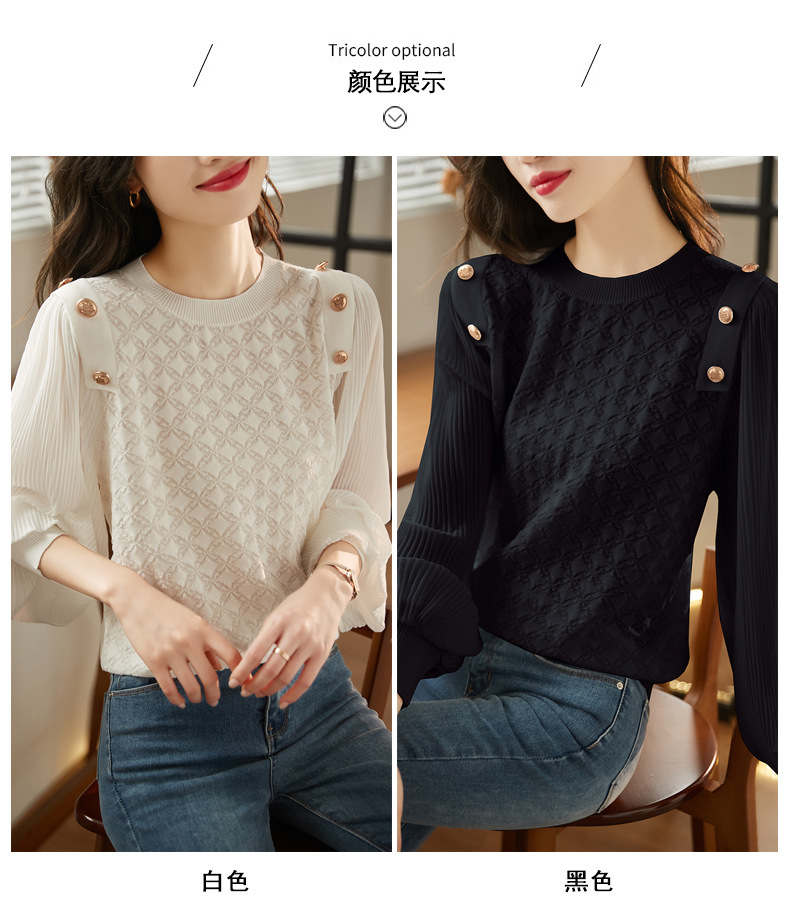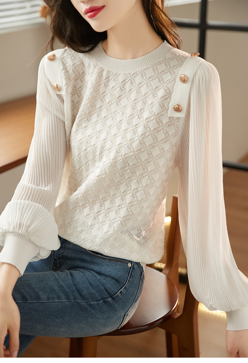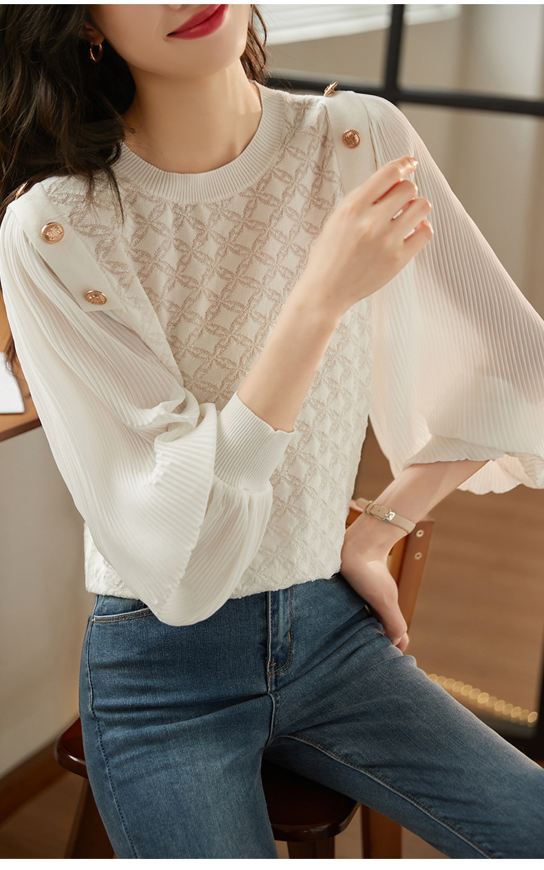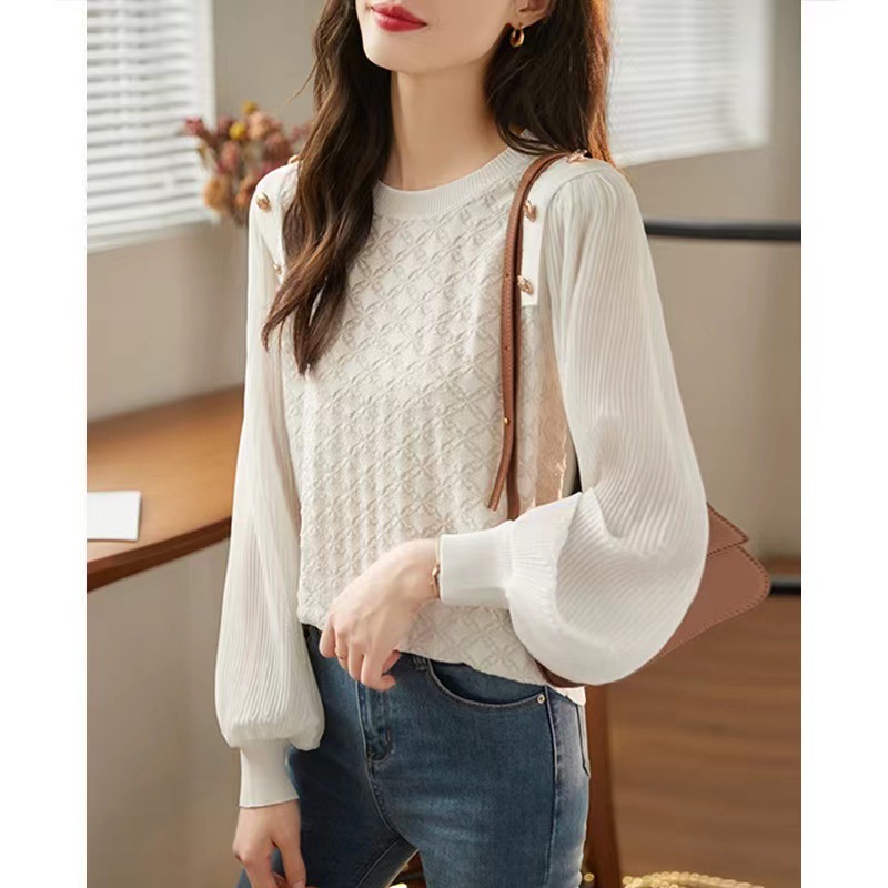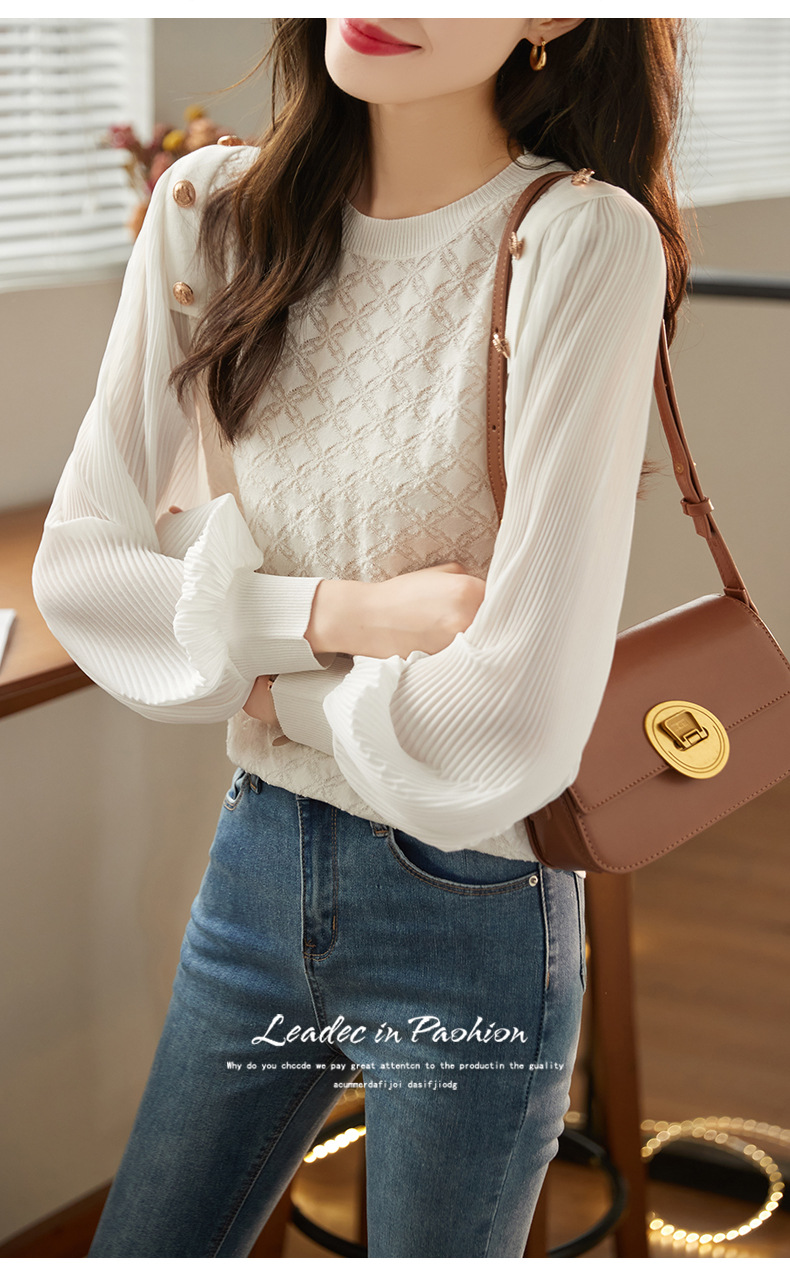 프랑스 스타일 봄 새로운 최고 디자인 센스 유럽 유행 서양식 시대 감소 슬리밍 달콤한 아름다운 니트 셔츠