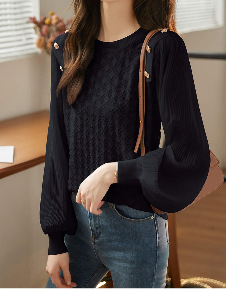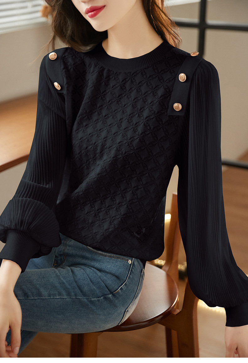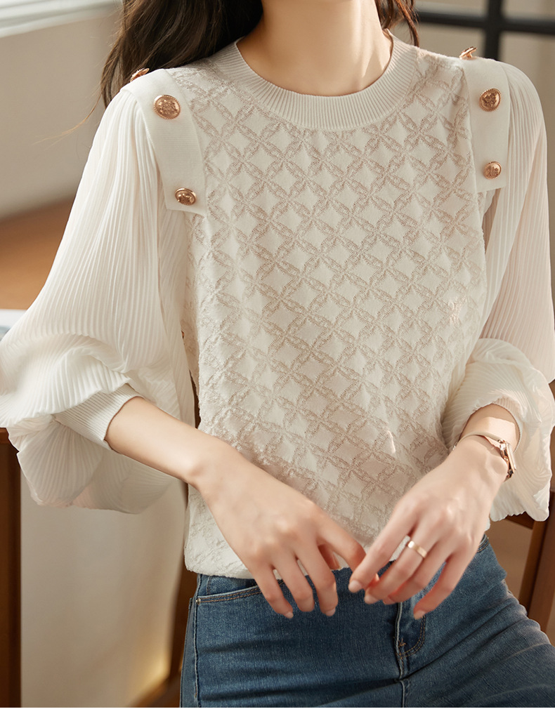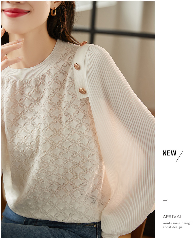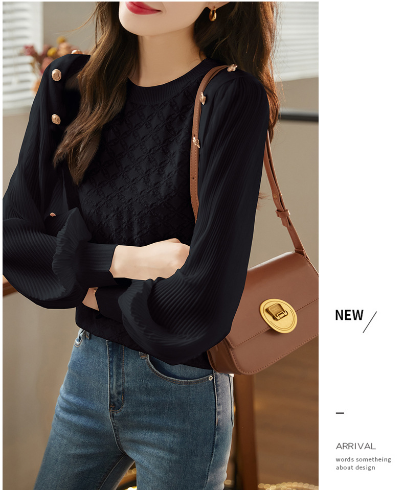 프랑스 스타일 봄 새로운 최고 디자인 센스 유럽 유행 서양식 시대 감소 슬리밍 달콤한 아름다운 니트 셔츠