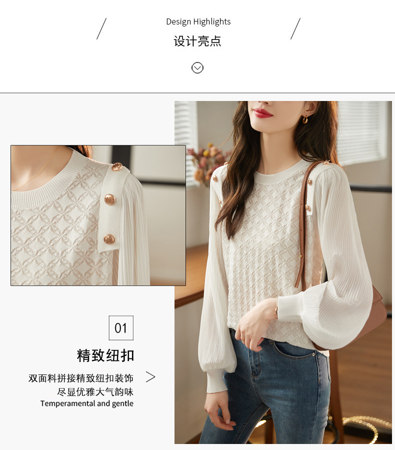 프랑스 스타일 봄 새로운 최고 디자인 센스 유럽 유행 서양식 시대 감소 슬리밍 달콤한 아름다운 니트 셔츠스토어 가기