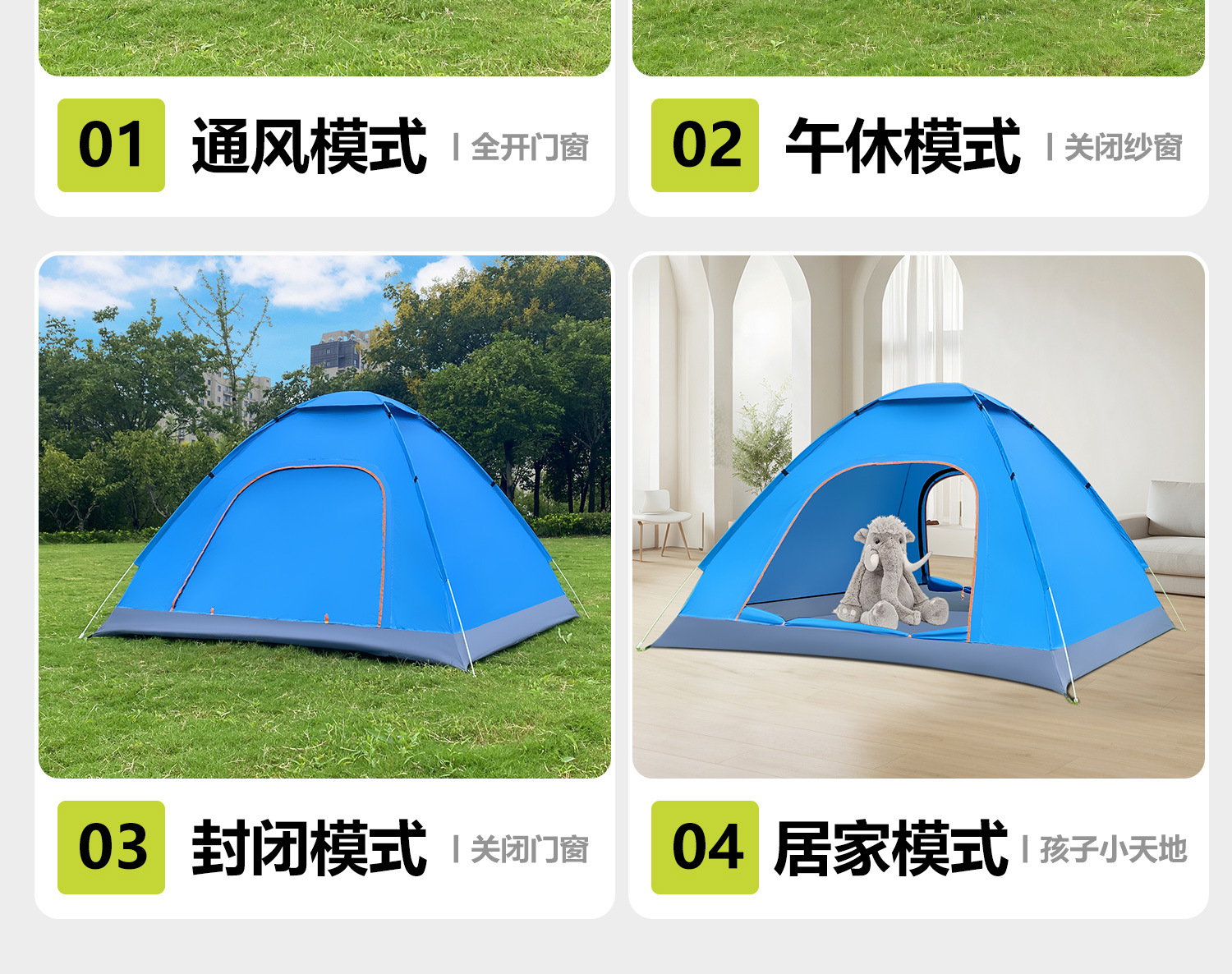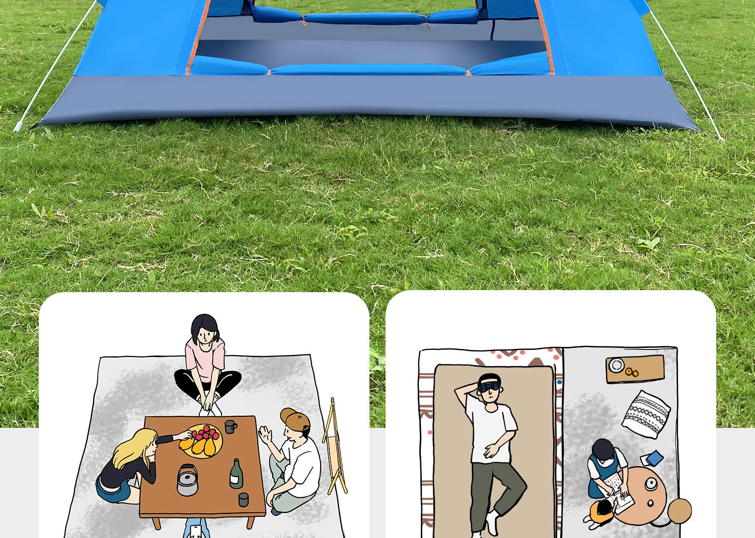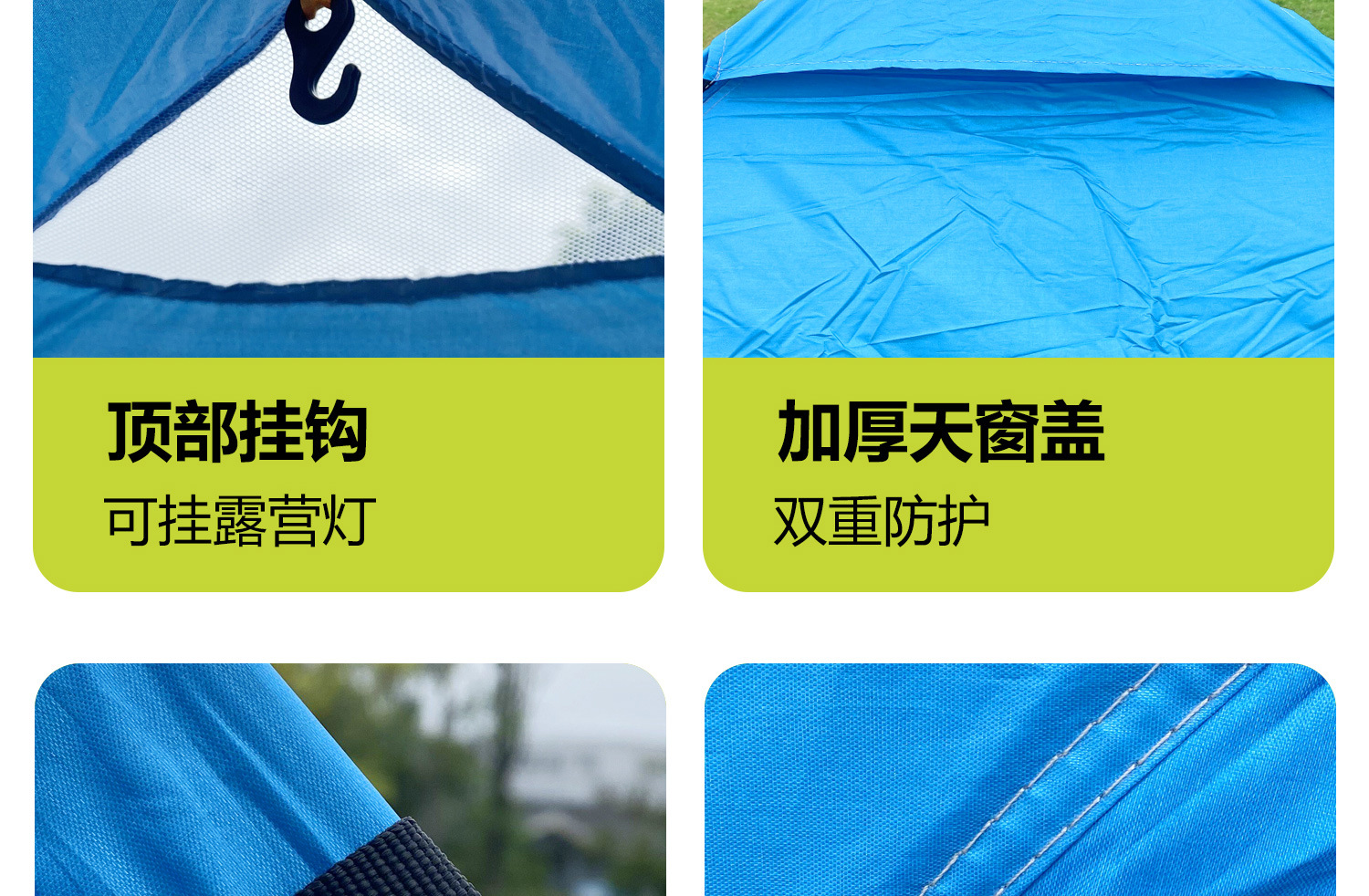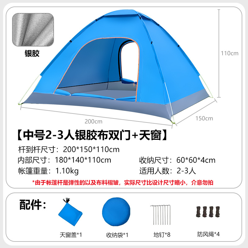 • 업그레이드된 중형 2-3인용 은박 테이프 + 양문형 + 양측면 창문 + 천창 [레이크 블루]