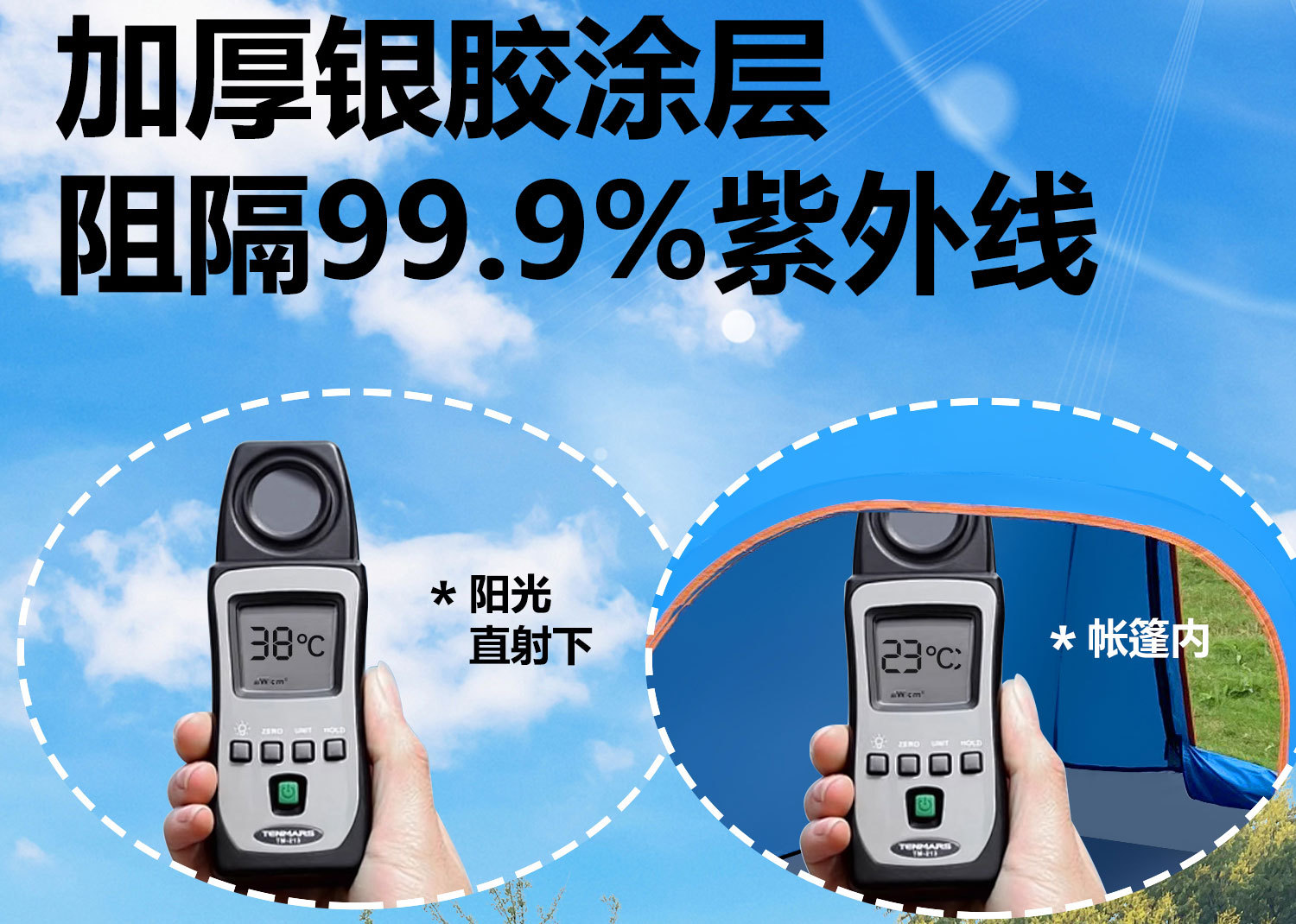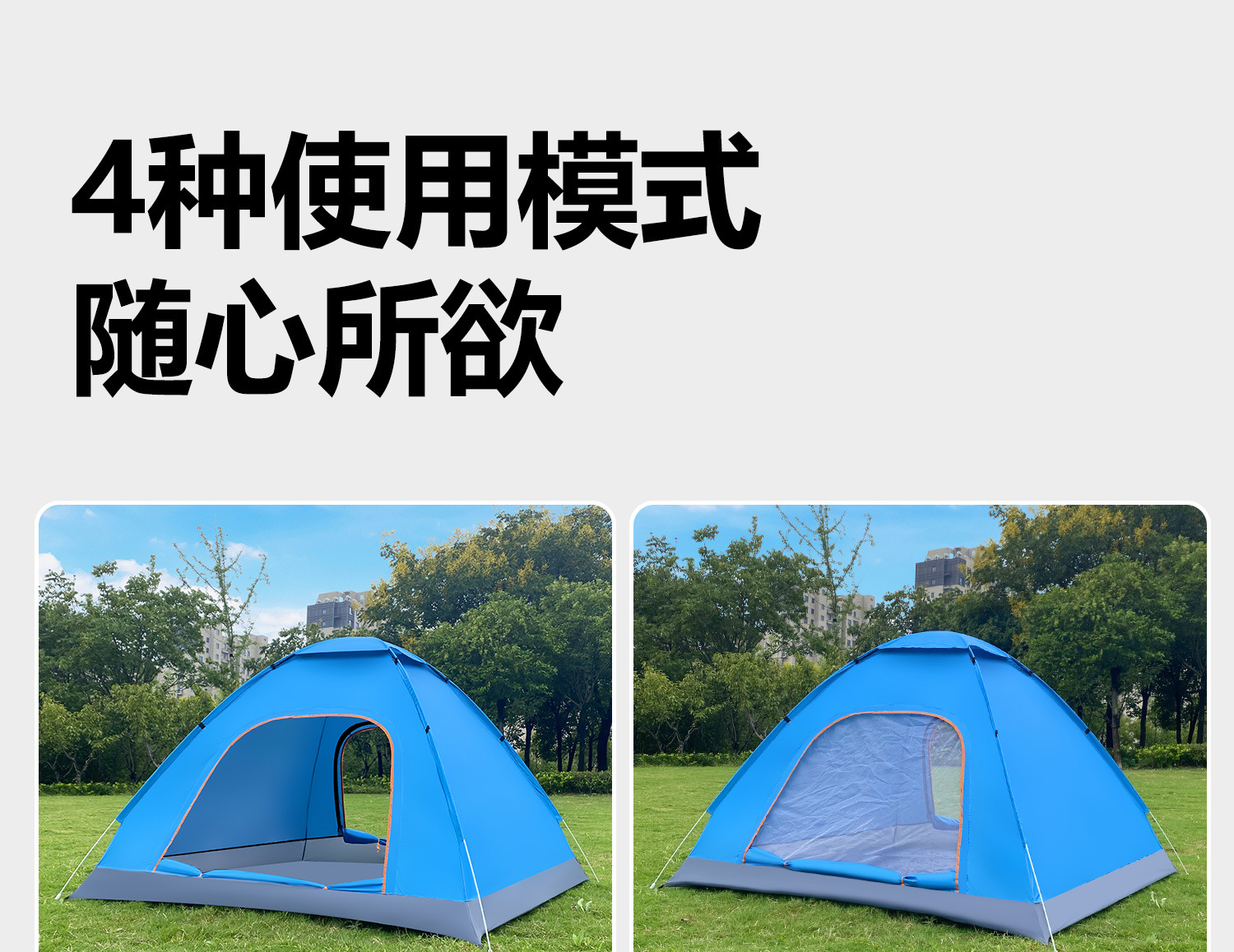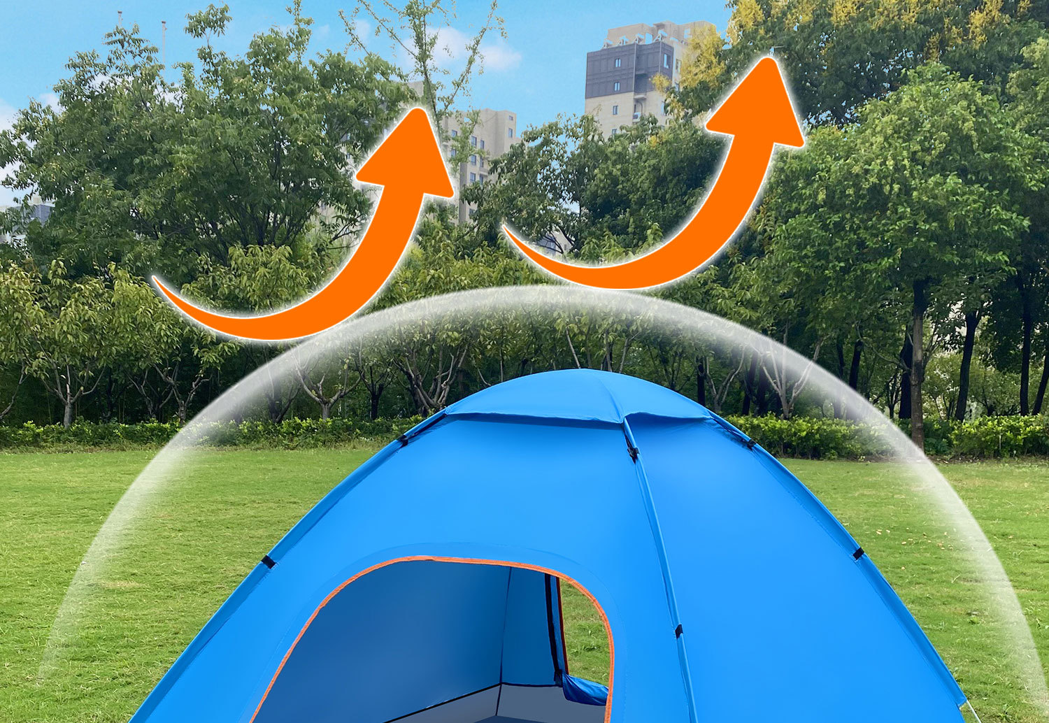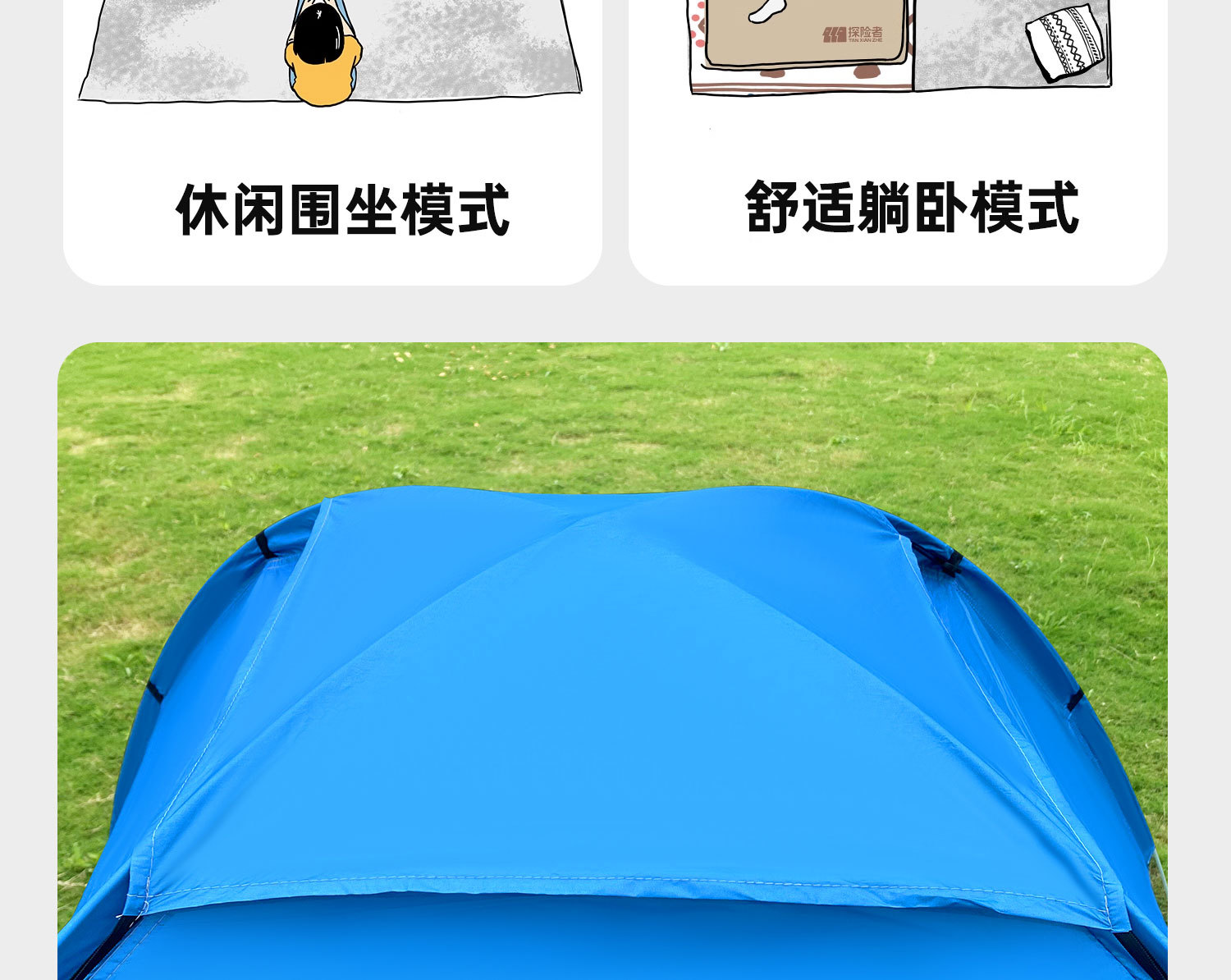• 업그레이드된 중형 2-3인용 은박 테이프 + 양문형 + 양측면 창문 + 천창 [레이크 블루]