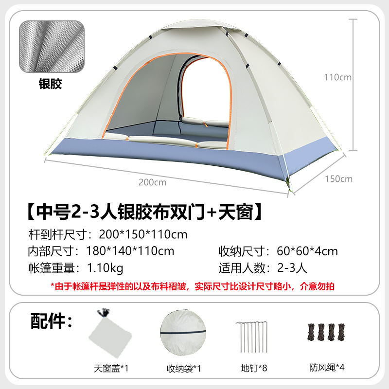 • 업그레이드된 중형 2-3인용 은박 테이프 + 양문형 + 양측면 창문 + 천창 [미색]