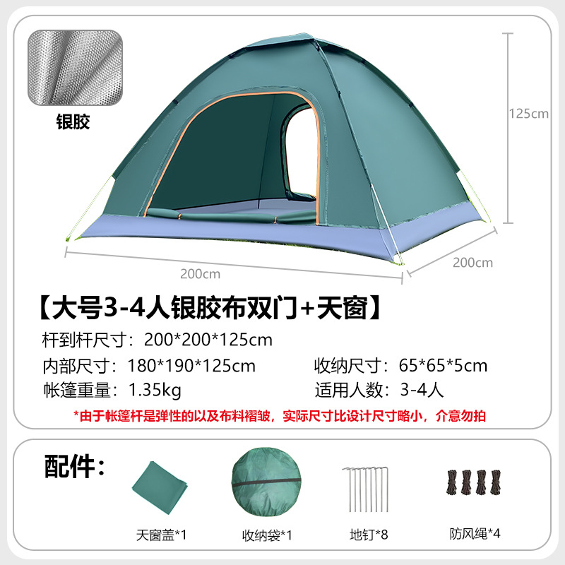 • 업그레이드된 중형 2-3인용 은박 테이프 + 양문형 도어 + 양쪽 측면 창문 + 천창 [다크 그린]