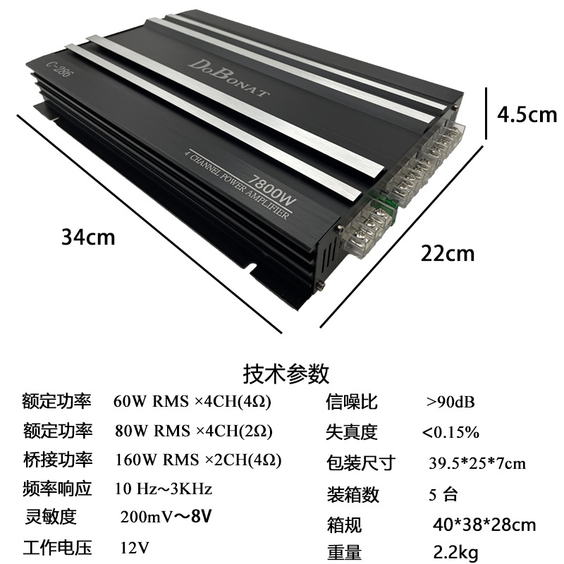 제조 업체 도매 자동차 오디오 수정 전력 증폭기 4 채널 4 방향 자동차 전력 증폭기 C-286