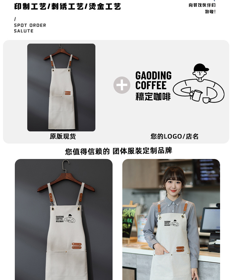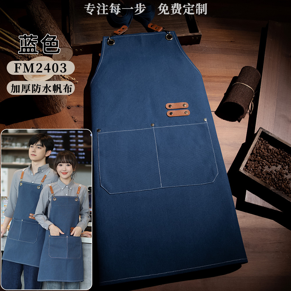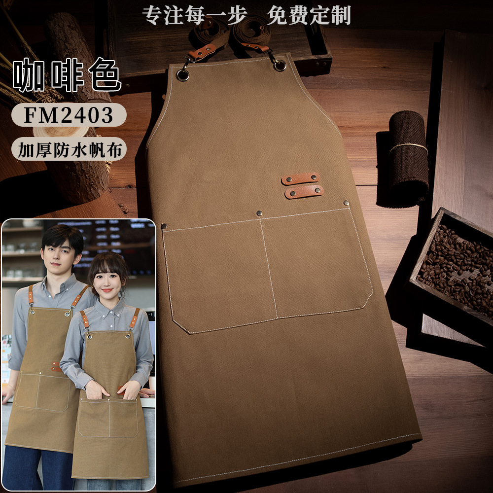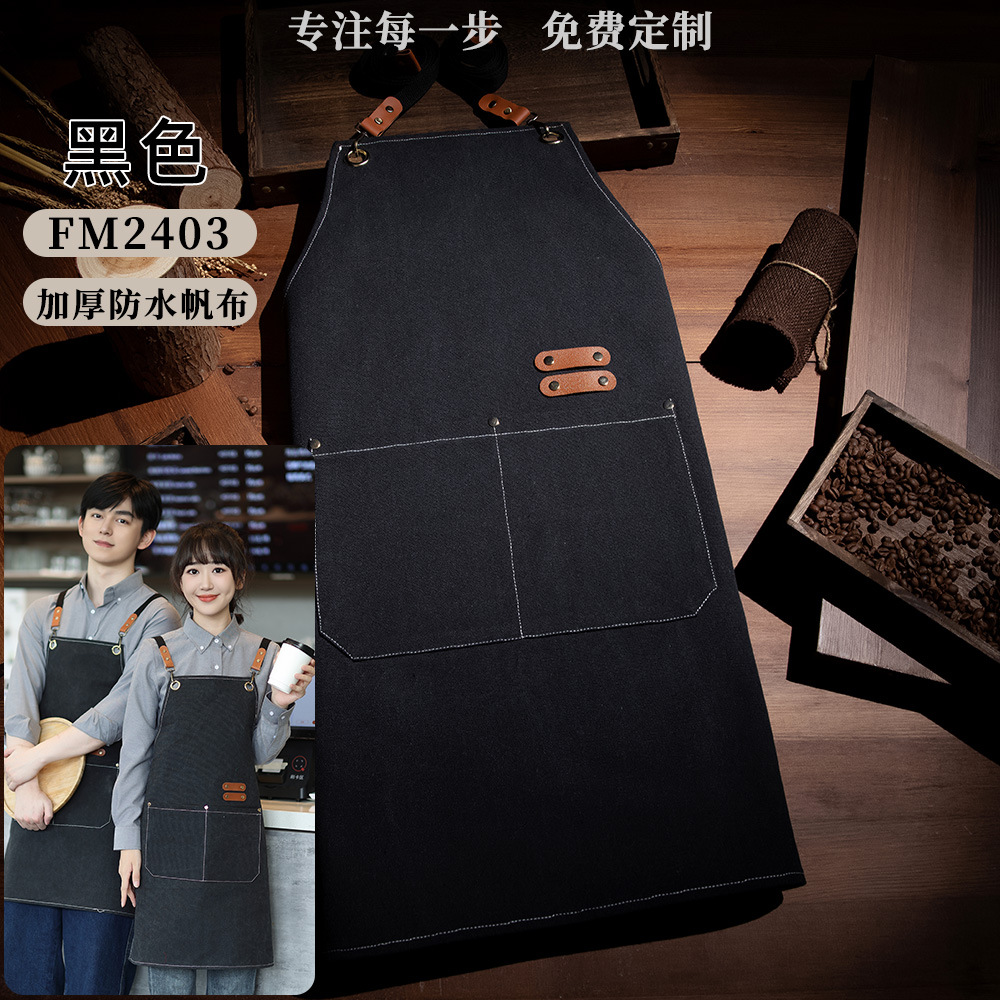 방수 캔버스 앞치마, 케이터링 전용, 로고 인쇄, 바리스타, 밀크티 가게, 두꺼운 내마모성 작업복, 여성용 민소매스토어 가기