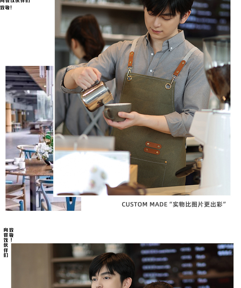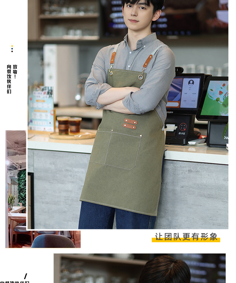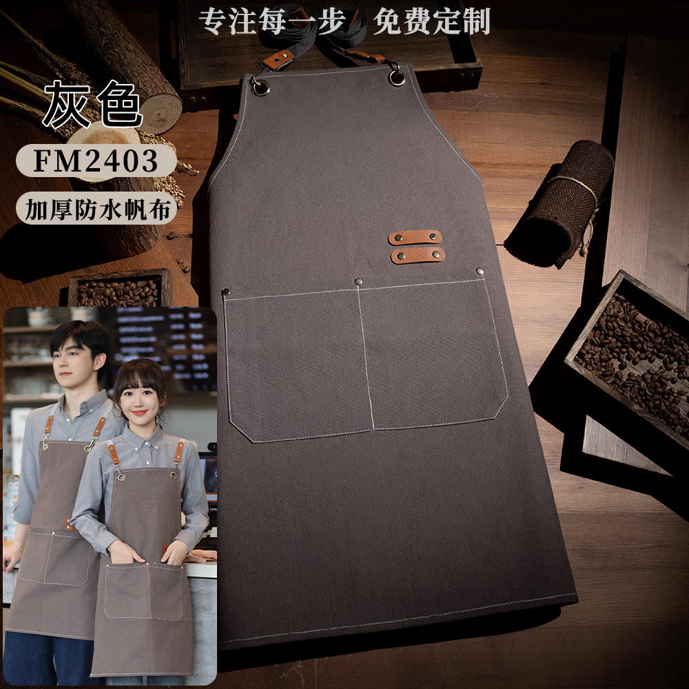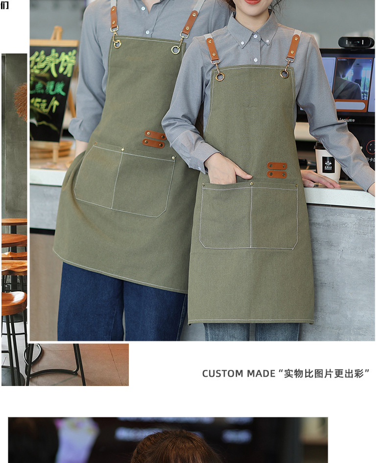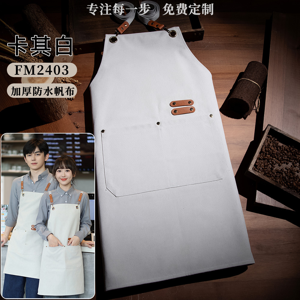 방수 캔버스 앞치마, 케이터링 전용, 로고 인쇄, 바리스타, 밀크티 가게, 두꺼운 내마모성 작업복, 여성용 민소매스토어 가기