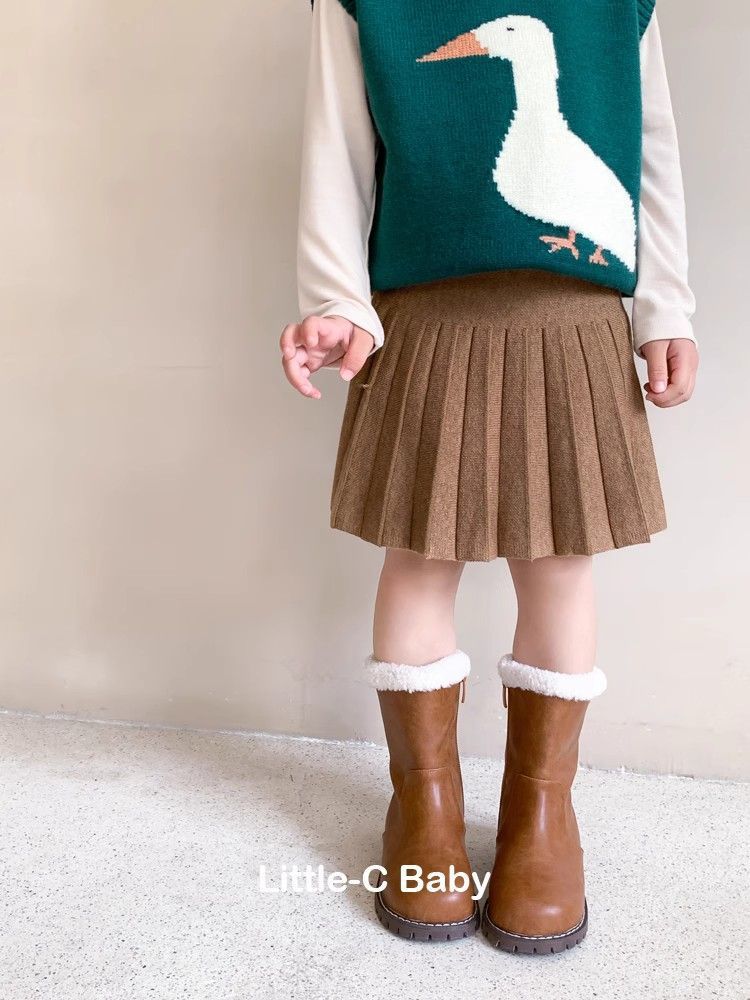 가을 겨울 필수템! 패셔너블한 아동 2025 가을 신상 여아 니트 플리츠 스커트와 짧은 스커트