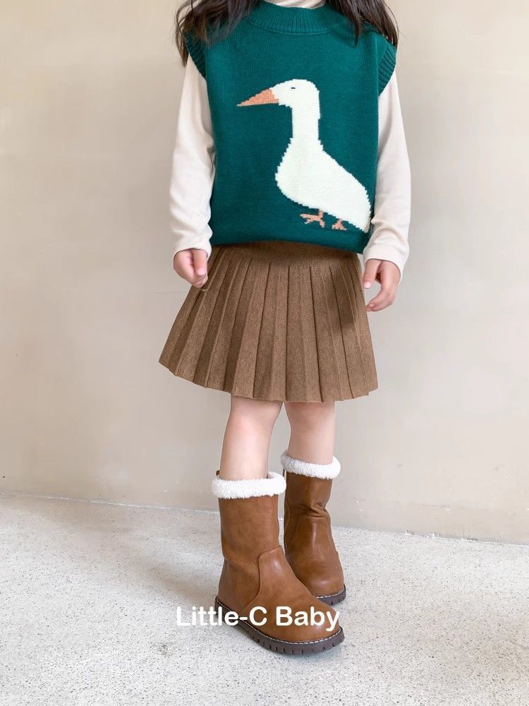 가을 겨울 필수템! 패셔너블한 아동 2025 가을 신상 여아 니트 플리츠 스커트와 짧은 스커트스토어 가기