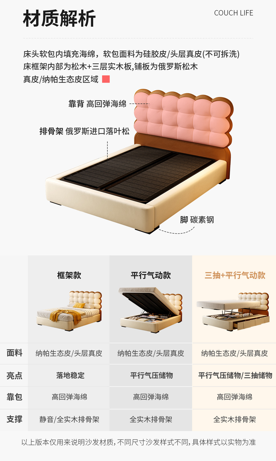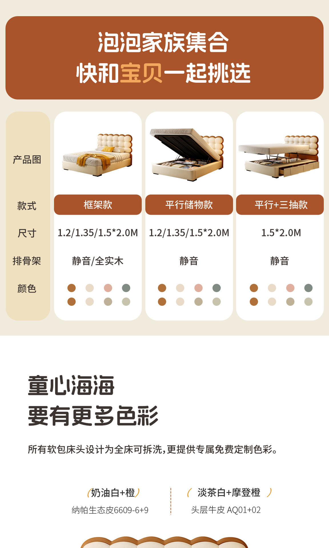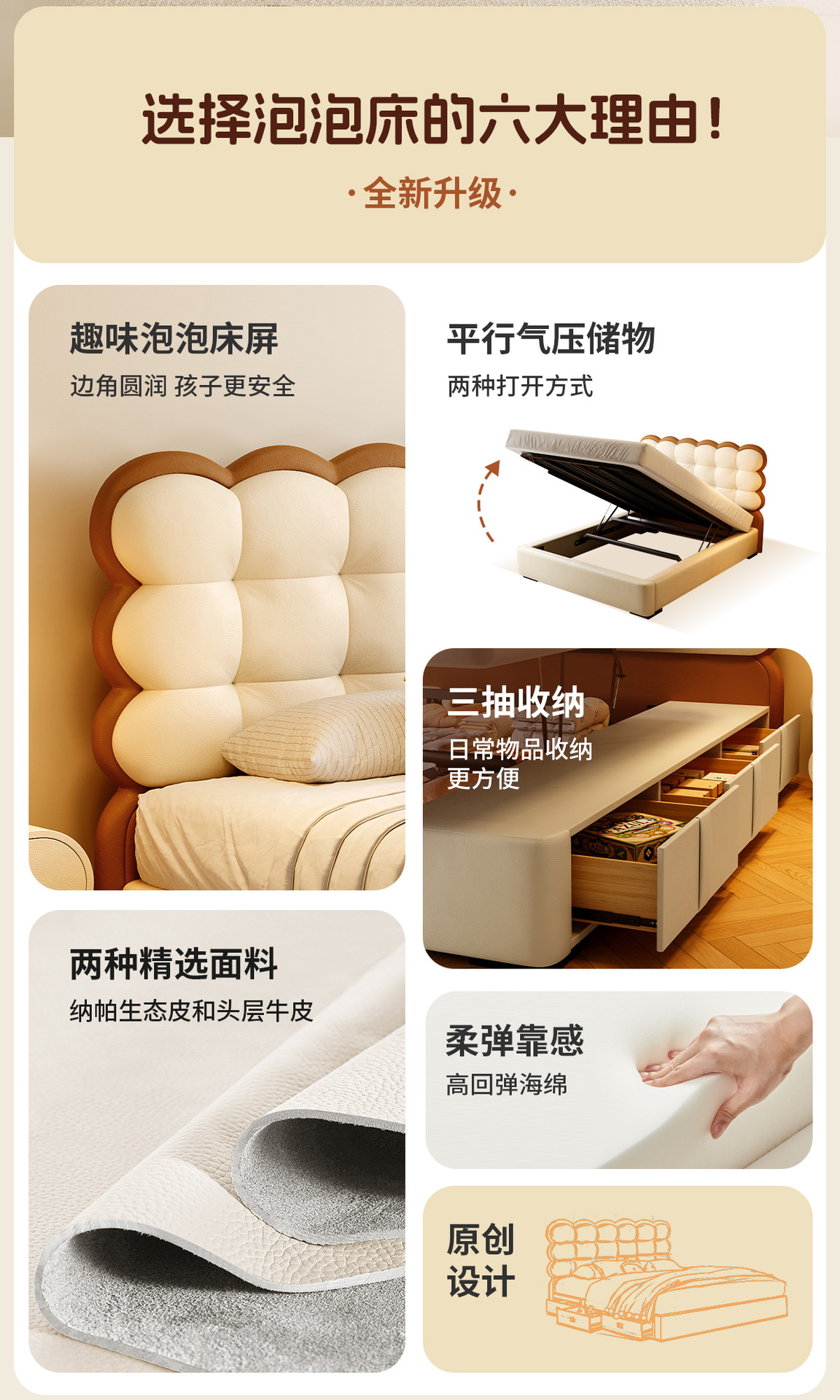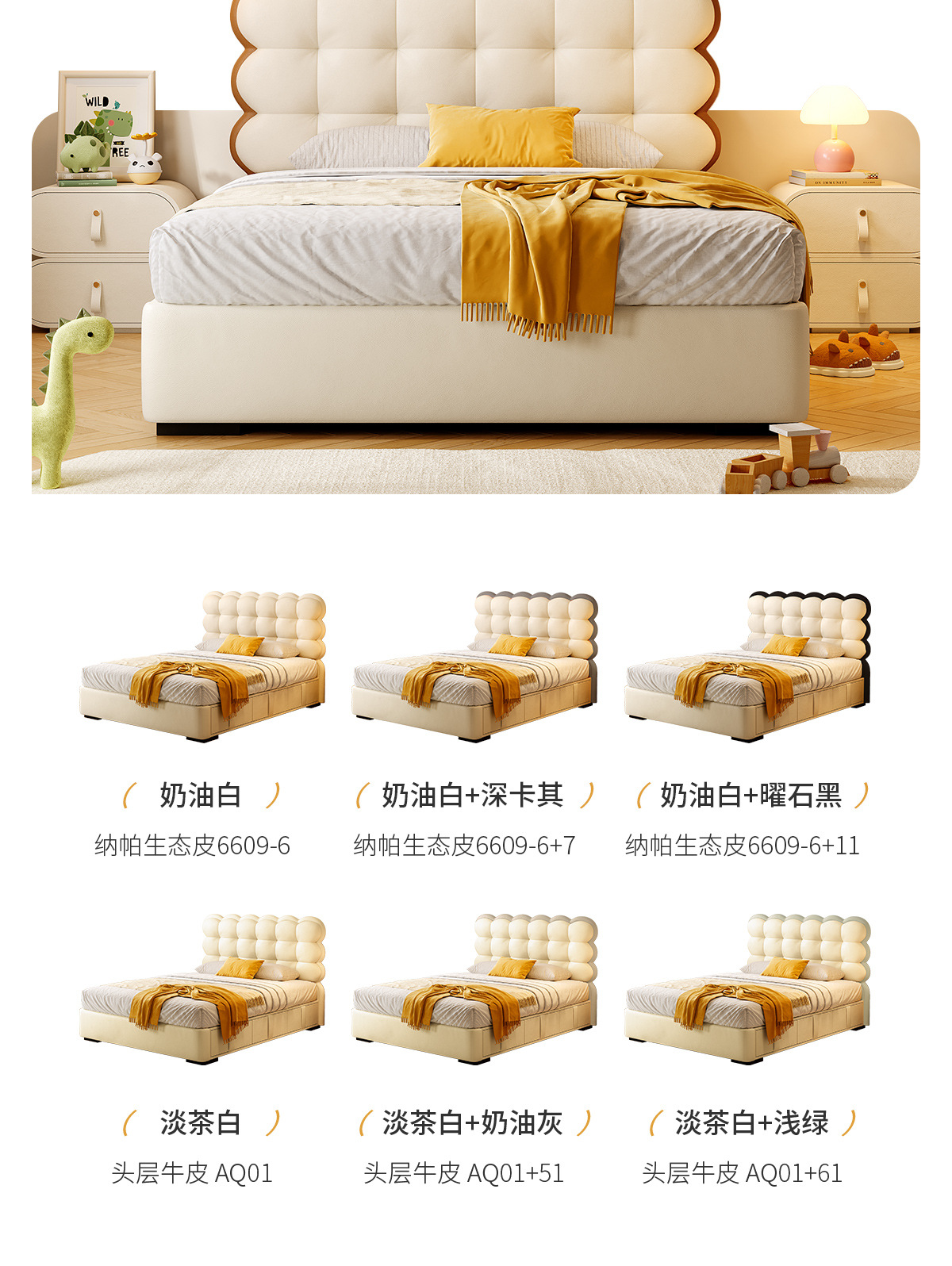 통 유트 크림 스타일 소녀 버블 침대 인터넷 연예인 공주 간단한 현대 비스킷 소년 침대 정품 가죽 어린이 침대스토어 가기