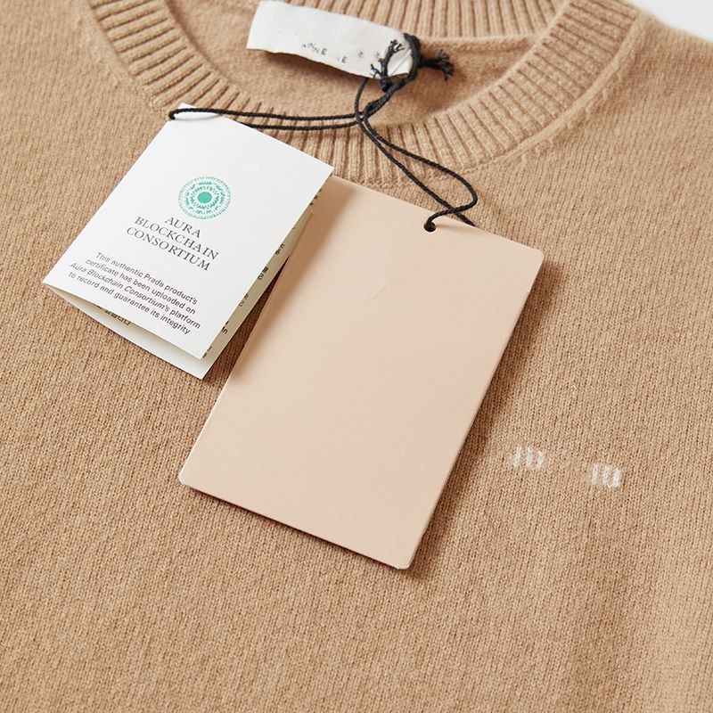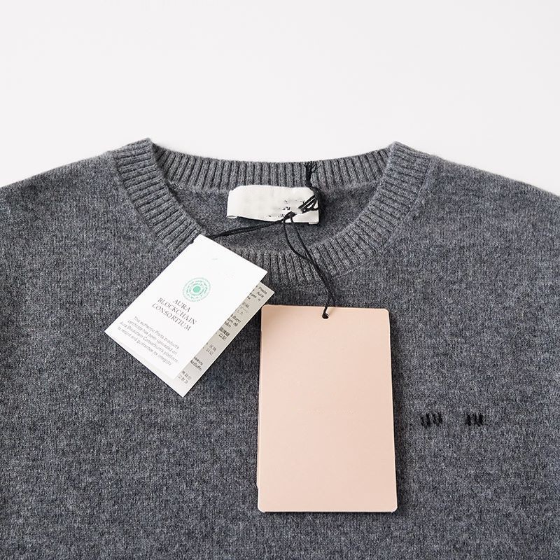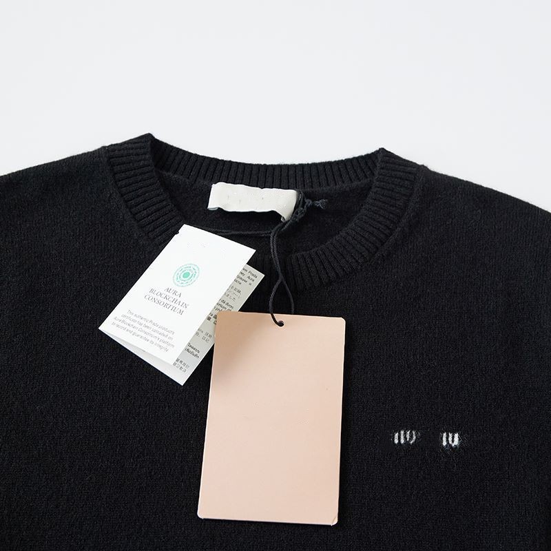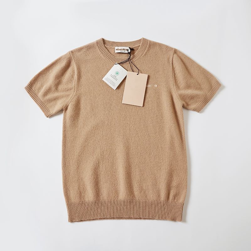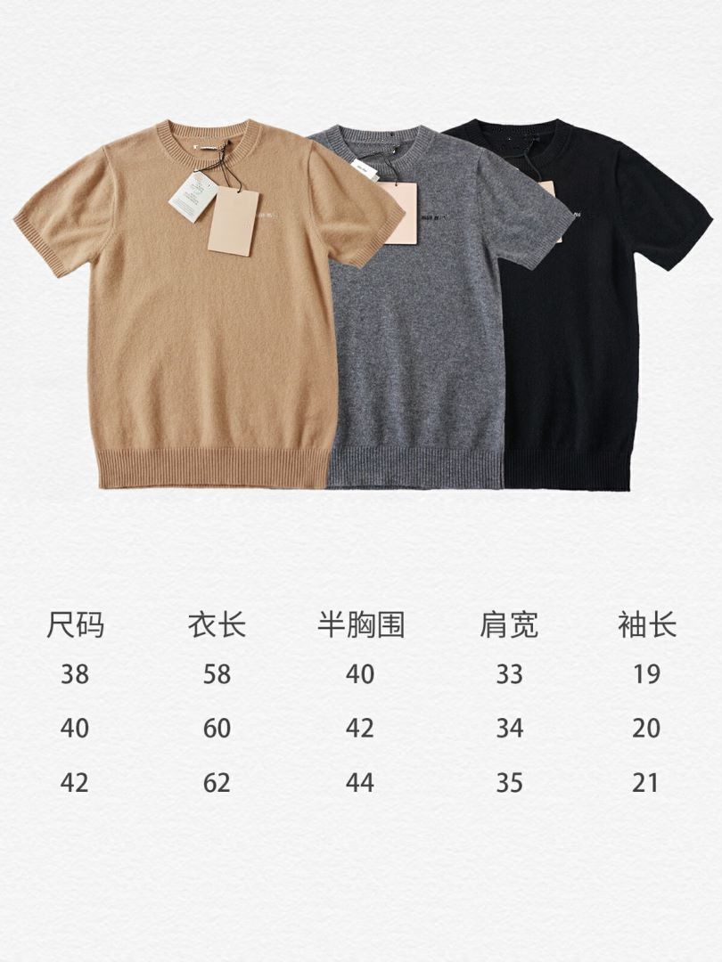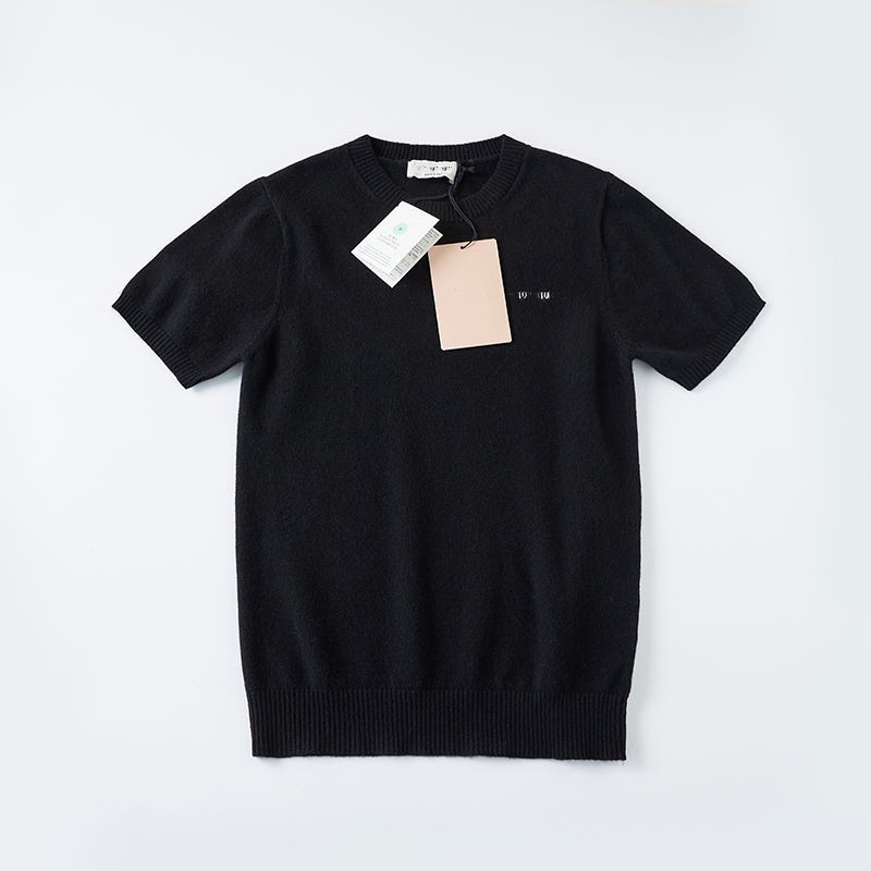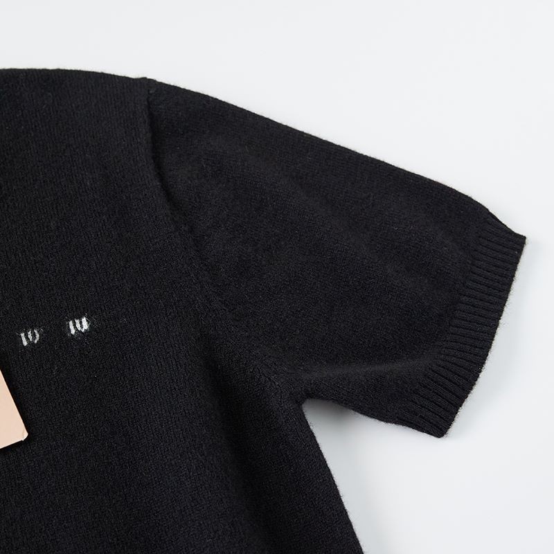 하이 버전 봄과 가을 Miu 가족 여성베이스 크루 넥 짧은 소매 양모 캐시미어 Miu Miu 니트 MIU 편지 여성스토어 가기