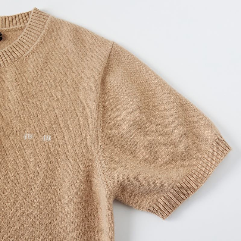 하이 버전 봄과 가을 Miu 가족 여성베이스 크루 넥 짧은 소매 양모 캐시미어 Miu Miu 니트 MIU 편지 여성