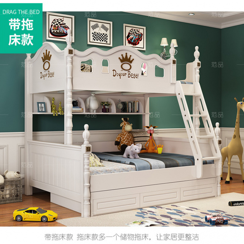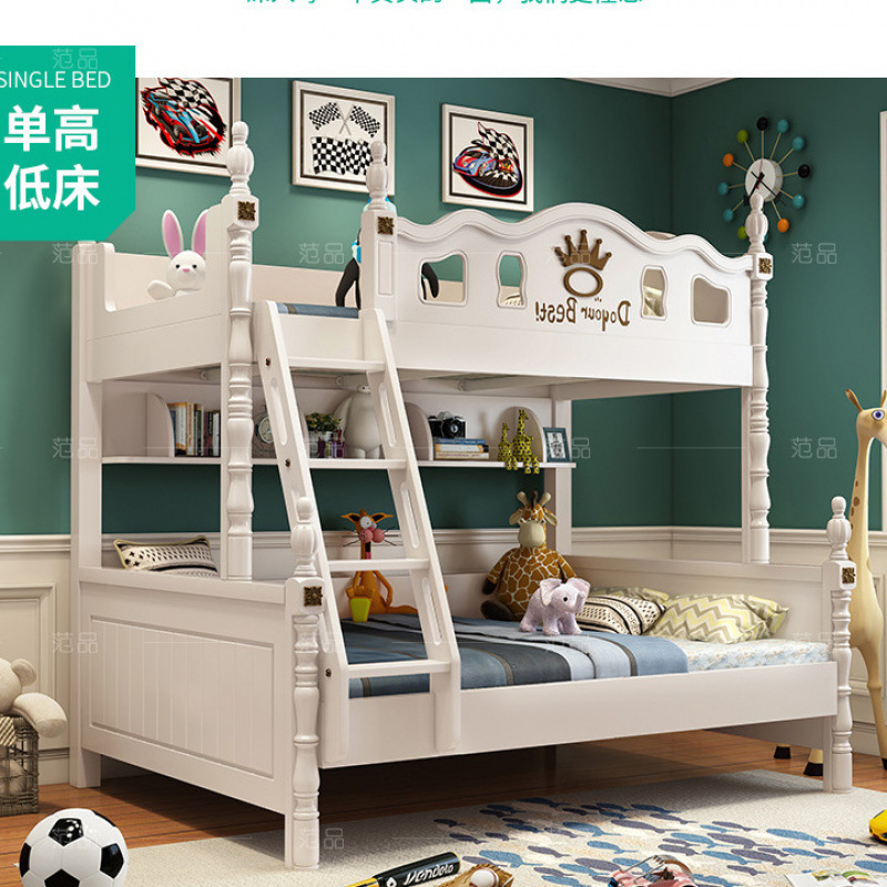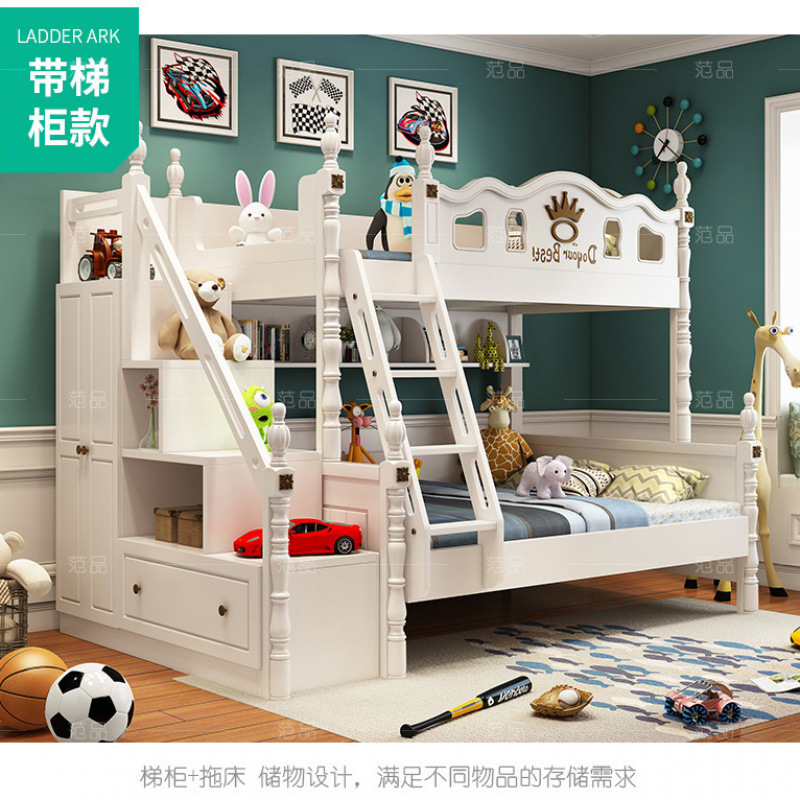 미국 스타일의 높고 낮은 침대 이층 침대 상층 및 하층 침대 슬라이드 옷장 단단한 나무 열 소년 및 소녀 어린이 침대 2 층 상하 침대