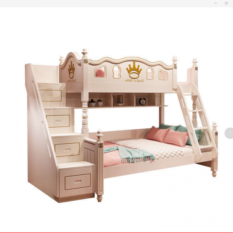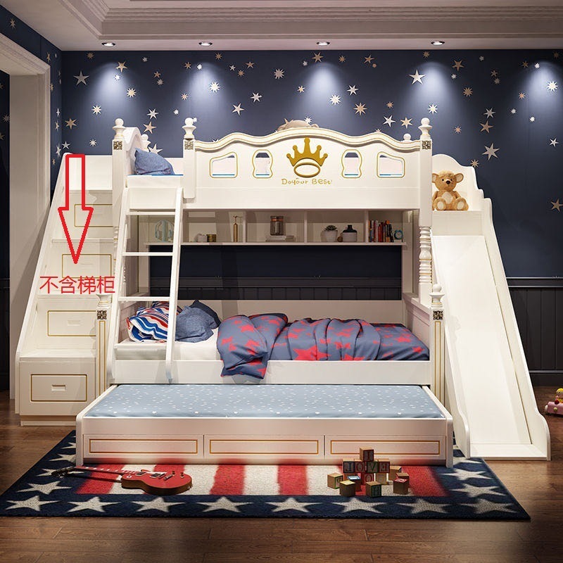 미국 스타일의 높고 낮은 침대 이층 침대 상층 및 하층 침대 슬라이드 옷장 단단한 나무 열 소년 및 소녀 어린이 침대 2 층 상하 침대스토어 가기
