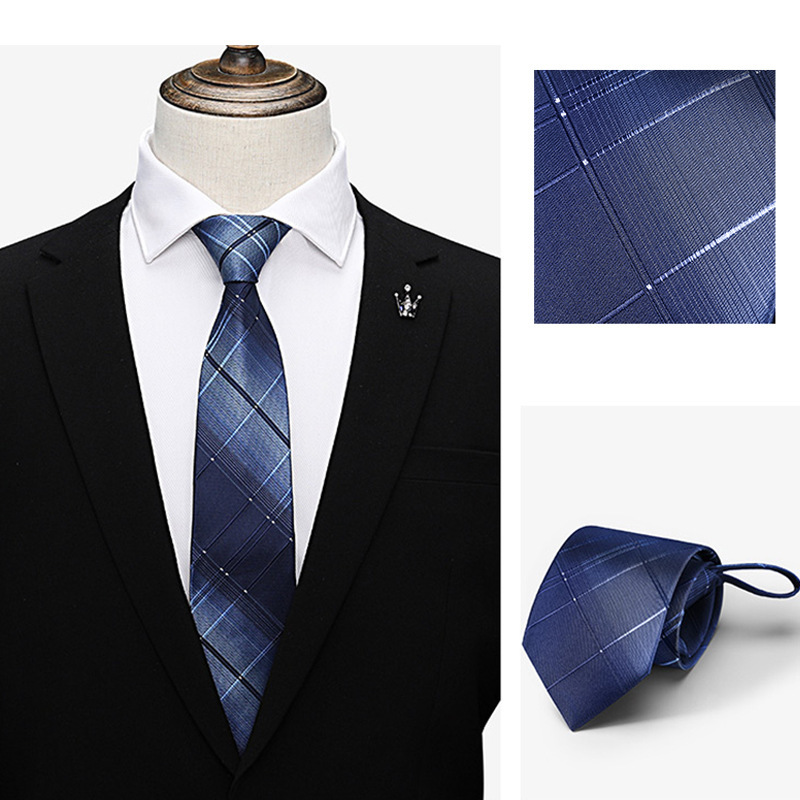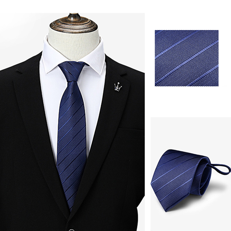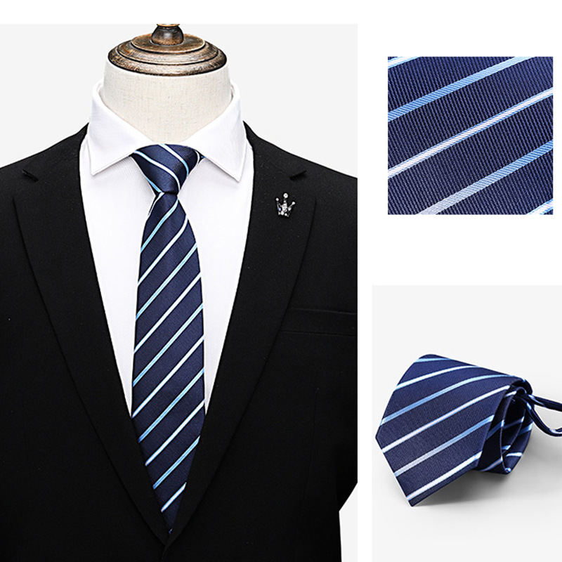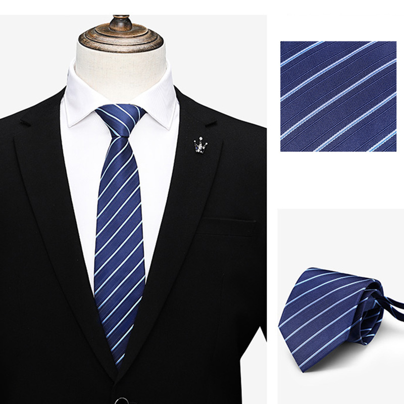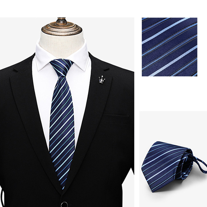 게으른 지퍼 넥타이 8CM 줄무늬 블루 신랑 웨딩 타이를 당기기 쉬운 남성 넥타이 원피스 사업스토어 가기