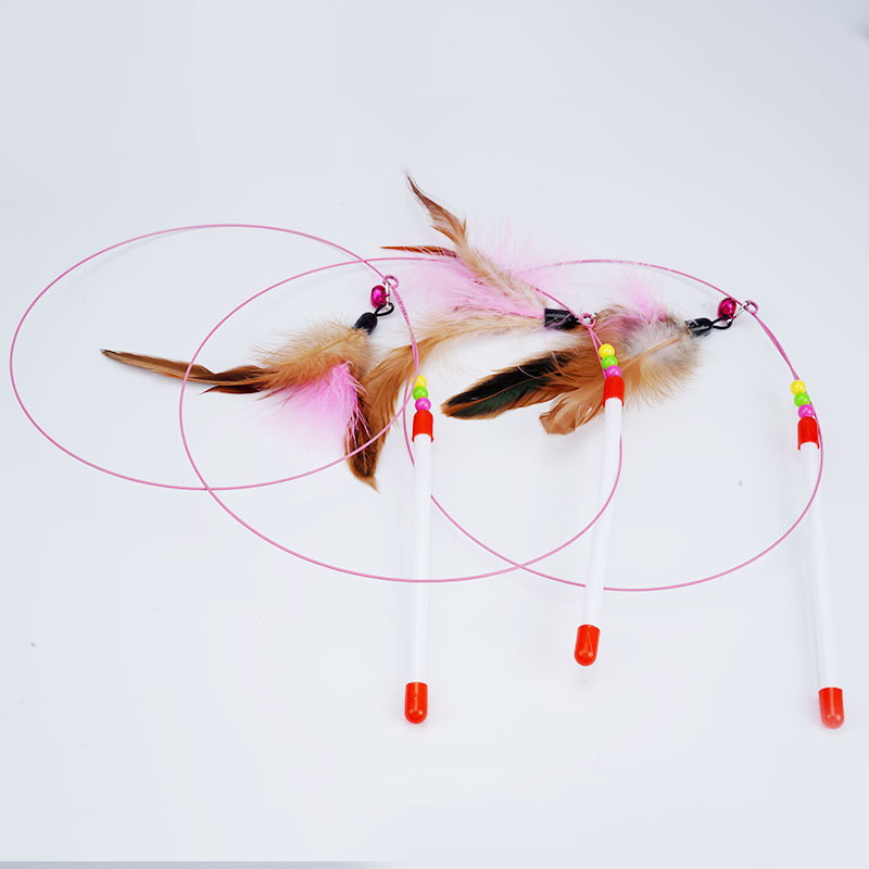 공장 직접 고양이 장난감 강철 와이어 깃털 고양이 스틱 고양이 요정 긴 극 고양이 스틱 셀프 하이 애완 동물 용품스토어 가기