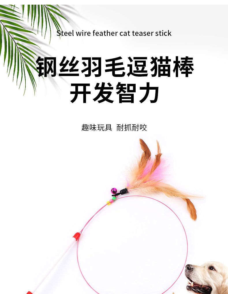 羽毛钢丝逗猫棒猫狗互动自嗨玩具仙女棒羽毛耐咬长杆逗猫棒
