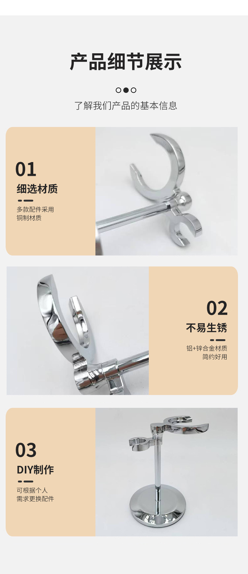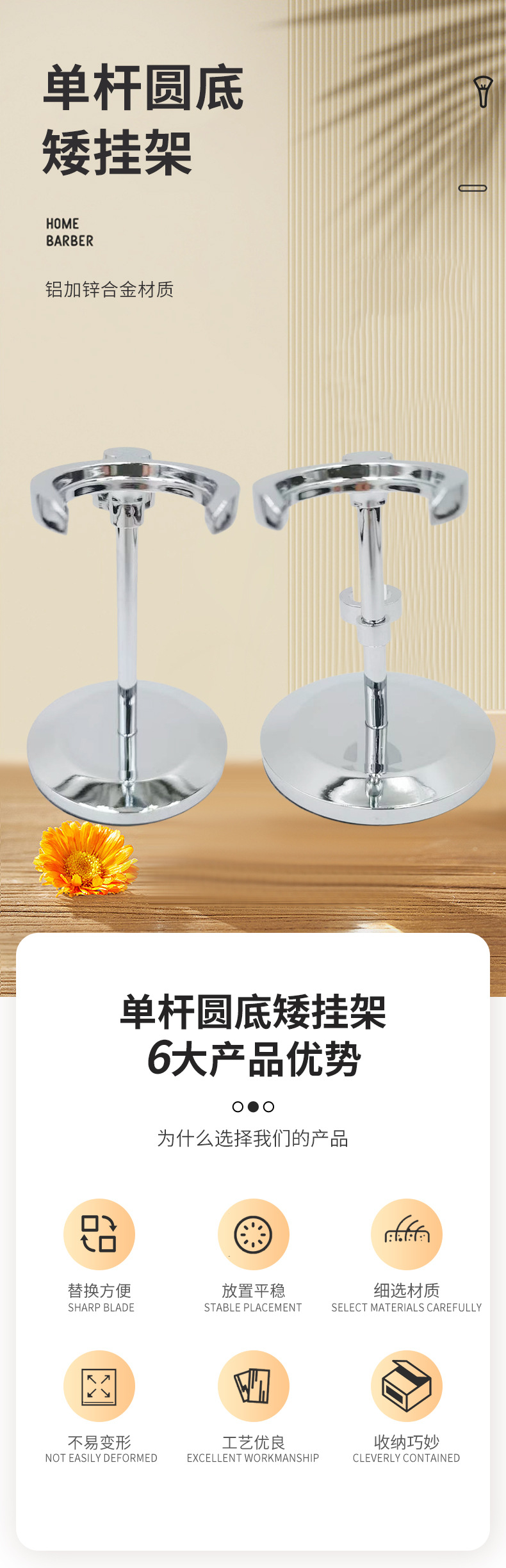 단일 극 둥근 바닥 낮은 행거 알루미늄 및 아연 합금 소재 크롬 도금 브러시 면도기 도매 매끄러운 비 긁힘 손