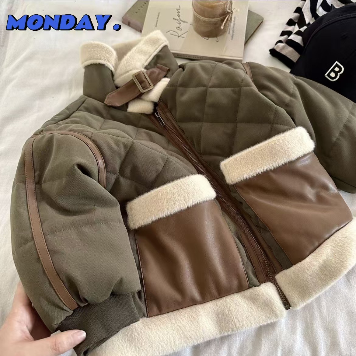 • 그린 가죽 코튼 재킷