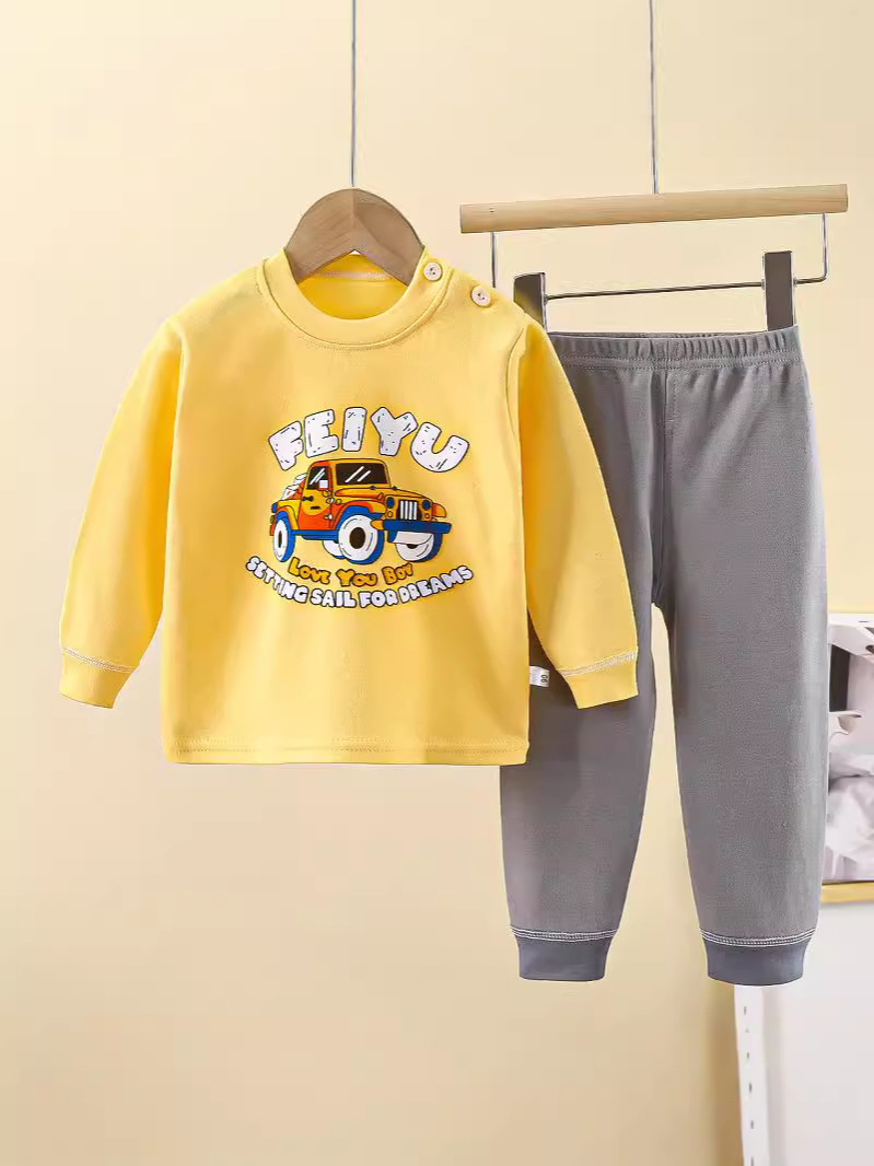 아기용 순면 내의 세트, 가을옷, 긴팔 잠옷, 남아 여아용, 만화 캐릭터 디자인